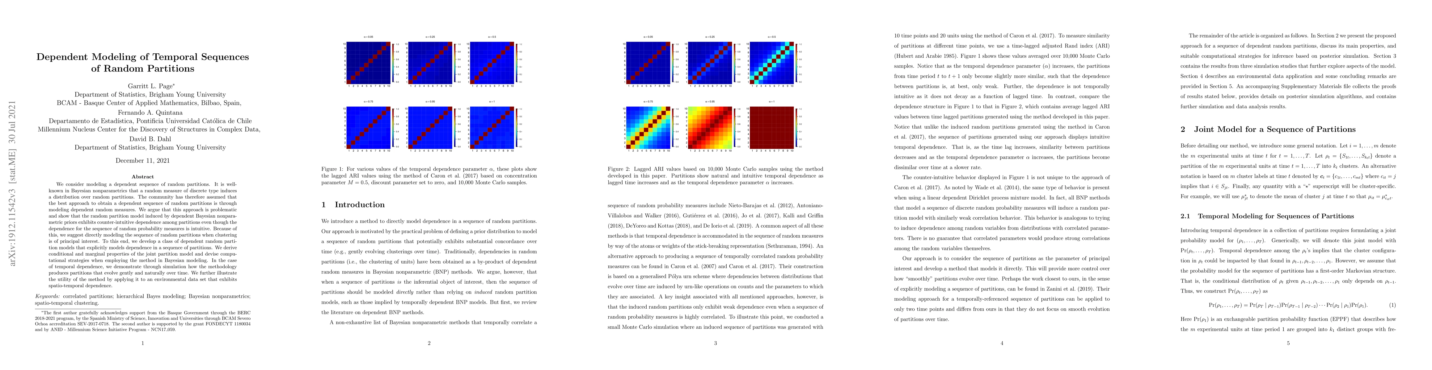 This paper proposes a new approach to model dependent sequences of random partitions, arguing against the conventional method of modeling dependent random measures. Instead, it introduces a class of models that directly captures the temporal dependence in partitions, demonstrating its effectiveness through simulations and an application to environmental data.