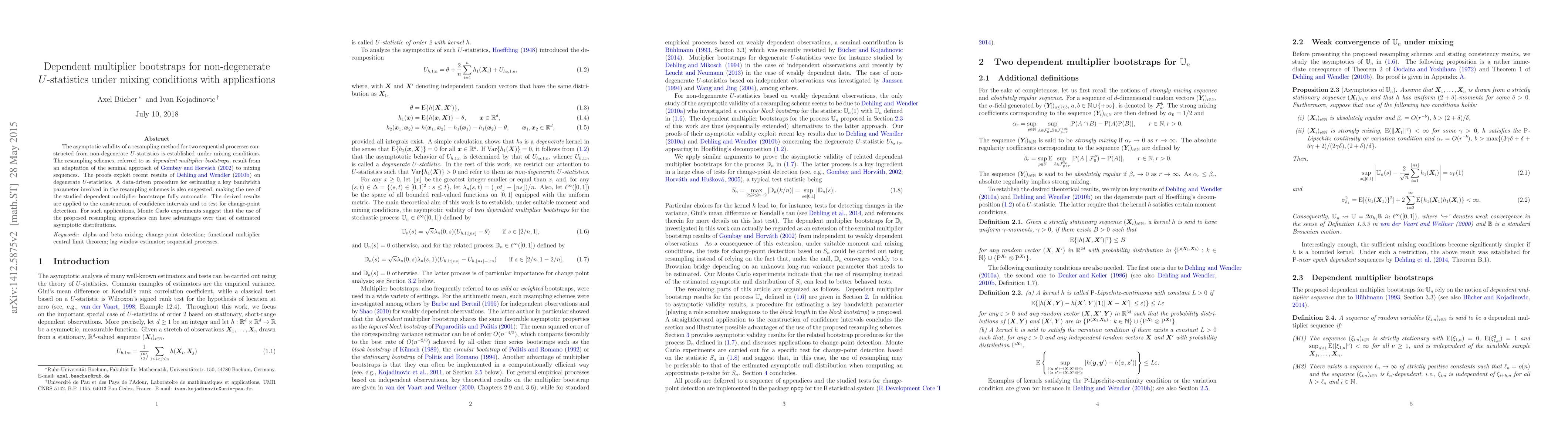 This paper establishes the asymptotic validity of dependent multiplier bootstraps for non-degenerate $U$-statistics under mixing conditions, adapting the Gombay-Horváth approach. It also proposes a data-driven method for estimating a key bandwidth parameter, and demonstrates its application in constructing confidence intervals and detecting change-points, showing advantages over traditional asymptotic methods.