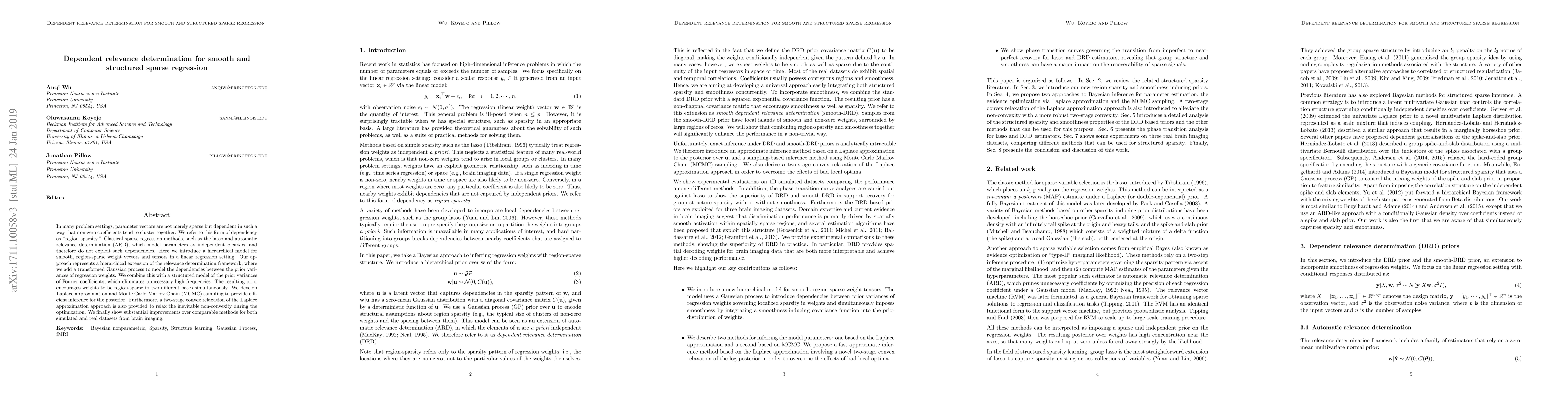 In many problem settings, parameter vectors are not merely sparse but dependent in such a way that non-zero coefficients tend to cluster together. We refer to this form of dependency as "region sparsity." Classical sparse regression methods, such as the lasso and automatic relevance determination (ARD), which model parameters as independent a priori, and therefore do not exploit such dependencies. Here we introduce a hierarchical model for smooth, region-sparse weight vectors and tensors in a linear regression setting. Our approach represents a hierarchical extension of the relevance determination framework, where we add a transformed Gaussian process to model the dependencies between the prior variances of regression weights. We combine this with a structured model of the prior variances of Fourier coefficients, which eliminates unnecessary high frequencies. The resulting prior encourages weights to be region-sparse in two different bases simultaneously. We develop Laplace approximation and Monte Carlo Markov Chain (MCMC) sampling to provide efficient inference for the posterior. Furthermore, a two-stage convex relaxation of the Laplace approximation approach is also provided to relax the inevitable non-convexity during the optimization. We finally show substantial improvements over comparable methods for both simulated and real datasets from brain imaging.