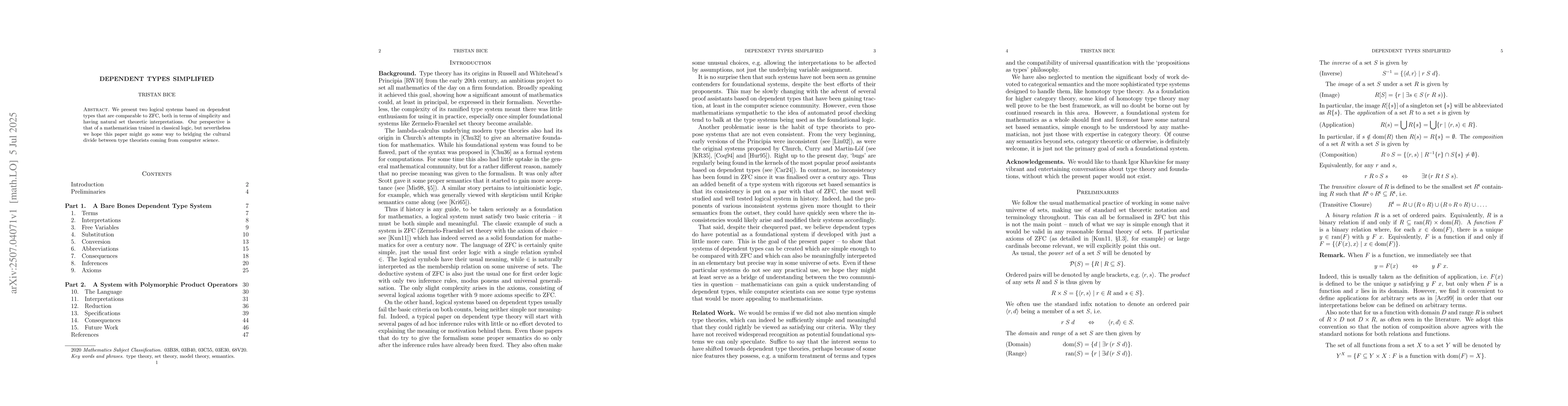 We present two logical systems based on dependent types that are comparable to ZFC, both in terms of simplicity and having natural set theoretic interpretations. Our perspective is that of a mathematician trained in classical logic, but nevertheless we hope this paper might go some way to bridging the cultural divide between type theorists coming from computer science.