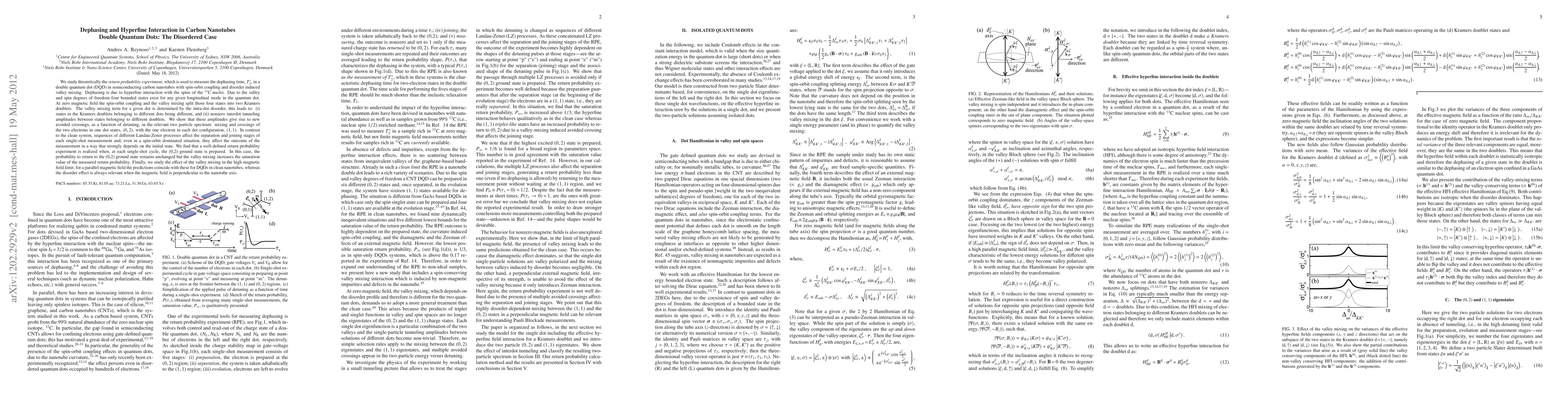 This paper theoretically investigates the dephasing time $T_2^*$ in double quantum dots within semiconducting carbon nanotubes under spin-orbit coupling and disorder, emphasizing hyperfine interaction with ${}^{13}$C nuclei. It shows that valley mixing due to intra-dot disorder affects return probability experiments, leading to altered Landau-Zener processes and varying outcomes based on initial states.