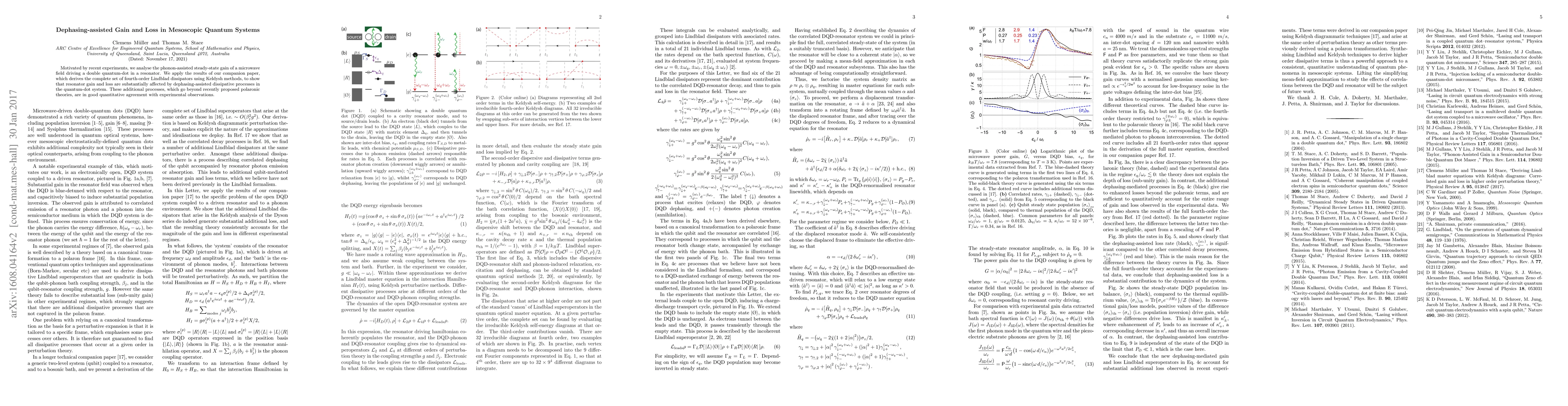 Motivated by recent experiments, we analyse the phonon-assisted steady-state gain of a microwave field driving a double quantum-dot in a resonator. We apply the results of our companion paper, which derives the complete set of fourth-order Lindblad dissipators using Keldysh methods, to show that resonator gain and loss are substantially affected by dephasing-assisted dissipative processes in the quantum-dot system. These additional processes, which go beyond recently proposed polaronic theories, are in good quantitative agreement with experimental observations