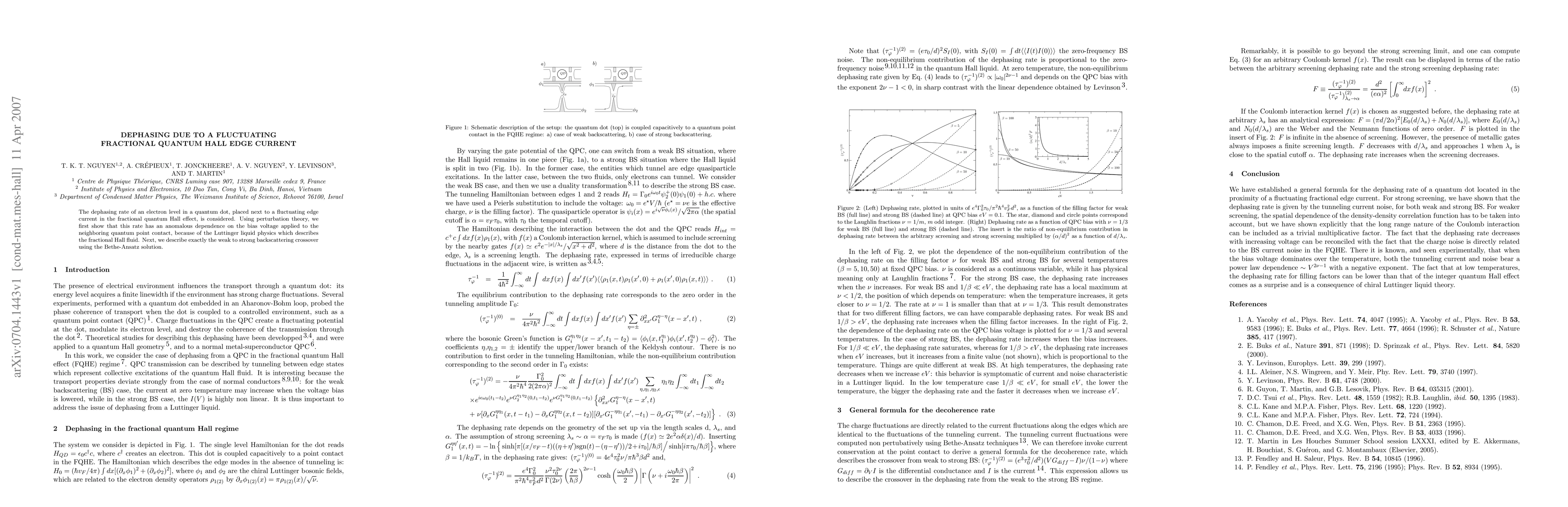 This paper investigates the dephasing rate of an electron in a quantum dot near a fluctuating fractional quantum Hall edge current, revealing an anomalous voltage dependence due to Luttinger liquid physics. It also uses the Bethe-Ansatz to detail the transition from weak to strong backscattering.