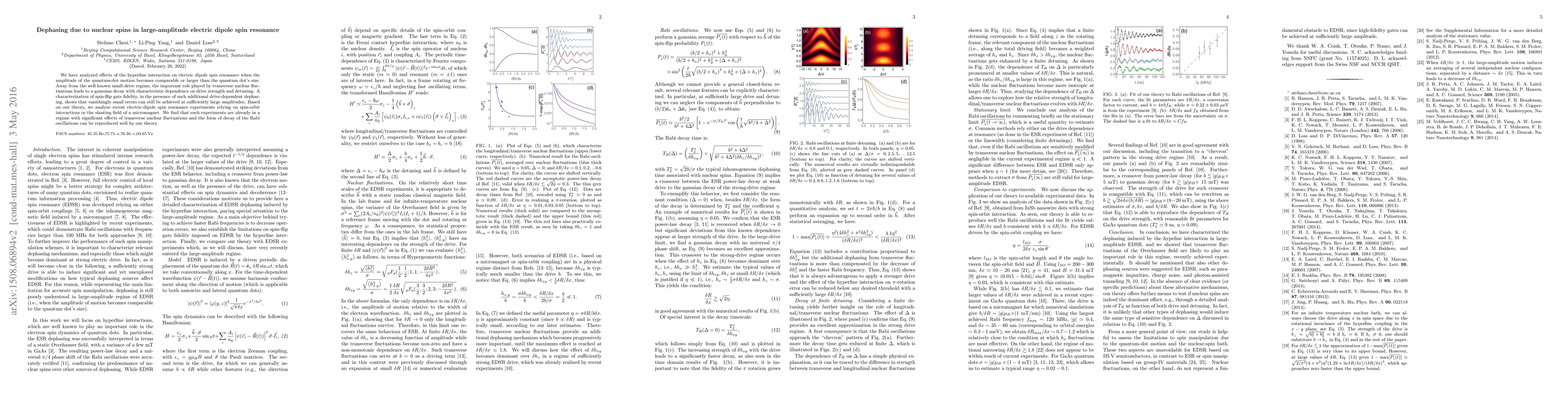 We have analyzed effects of the hyperfine interaction on electric dipole spin resonance when the amplitude of the quantum-dot motion becomes comparable or larger than the quantum dot's size. Away from the well known small-drive regime, the important role played by transverse nuclear fluctuations leads to a gaussian decay with characteristic dependence on drive strength and detuning. A characterization of spin-flip gate fidelity, in the presence of such additional drive-dependent dephasing, shows that vanishingly small errors can still be achieved at sufficiently large amplitudes. Based on our theory, we analyze recent electric-dipole spin resonance experiments relying on spin-orbit interactions or the slanting field of a micromagnet. We find that such experiments are already in a regime with significant effects of transverse nuclear fluctuations and the form of decay of the Rabi oscillations can be reproduced well by our theory.