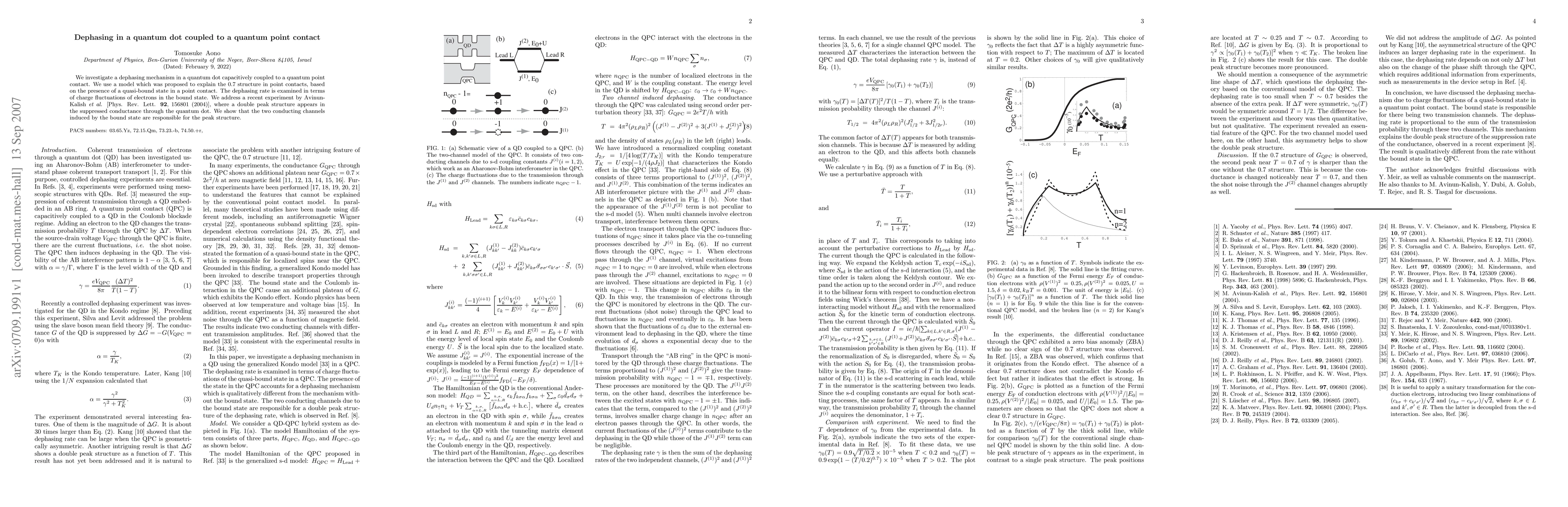 This paper investigates dephasing in a quantum dot linked to a quantum point contact, attributing the observed 0.7 structure to quasi-bound states. The study shows that charge fluctuations in these states cause a double peak in suppressed conductance, as demonstrated in recent experiments.