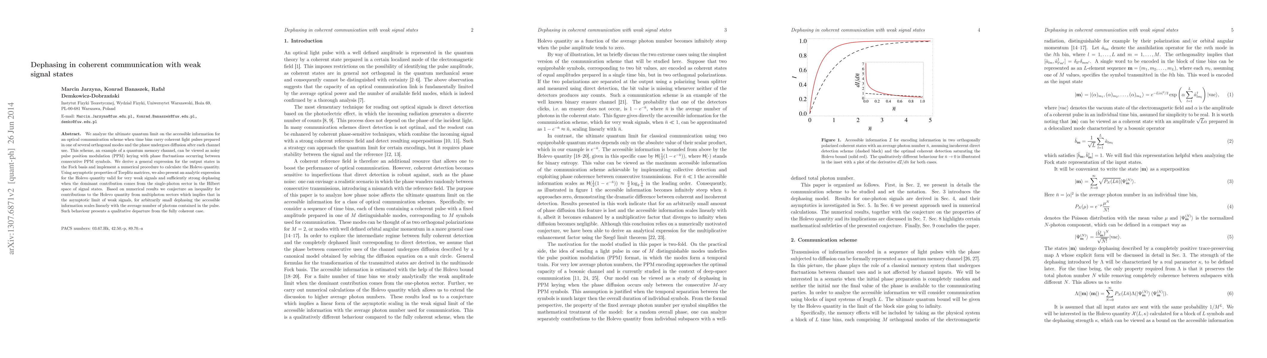 We analyze the ultimate quantum limit on the accessible information for an optical communication scheme when time bins carry coherent light pulses prepared in one of several orthogonal modes and the phase undergoes diffusion after each channel use. This scheme, an example of a quantum memory channel, can be viewed as noisy pulse position modulation (PPM) keying with phase fluctuations occurring between consecutive PPM symbols. We derive a general expression for the output states in the Fock basis and implement a numerical procedure to calculate the Holevo quantity. Using asymptotic properties of Toeplitz matrices, we also present an analytic expression for the Holevo quantity valid for very weak signals and sufficiently strong dephasing when the dominant contribution comes from the single-photon sector in the Hilbert space of signal states. Based on numerical results we conjecture an inequality for contributions to the Holevo quantity from multiphoton sectors which implies that in the asymptotic limit of weak signals, for arbitrarily small dephasing the accessible information scales linearly with the average number of photons contained in the pulse. Such behaviour presents a qualitative departure from the fully coherent case.