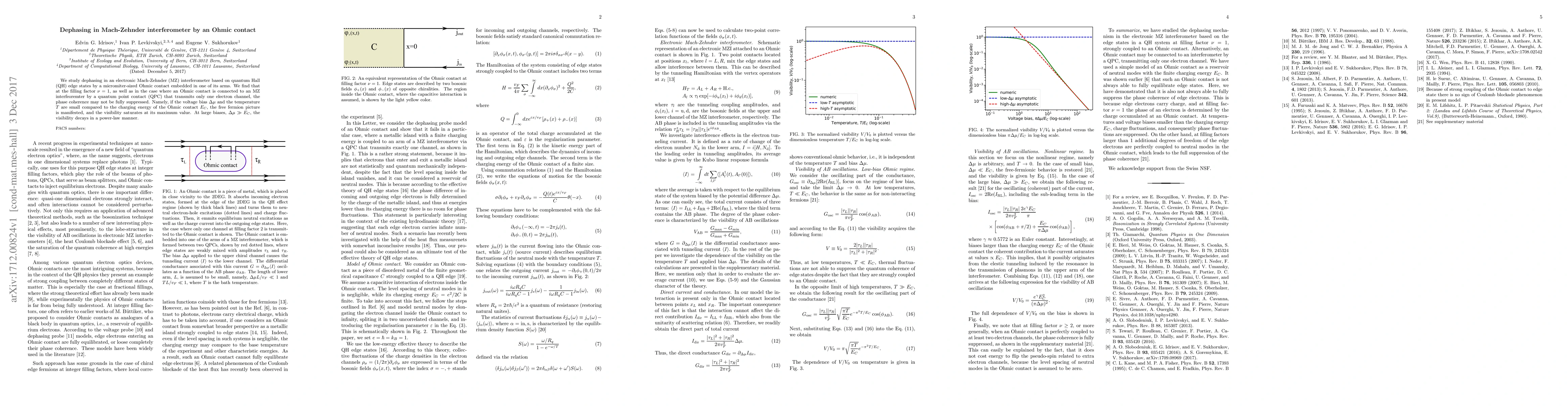 This paper investigates dephasing in a quantum Hall edge state-based Mach-Zehnder interferometer influenced by an Ohmic contact. It finds that at low voltage biases and temperatures, the phase coherence remains intact, while at higher biases, visibility decays in a power-law manner.