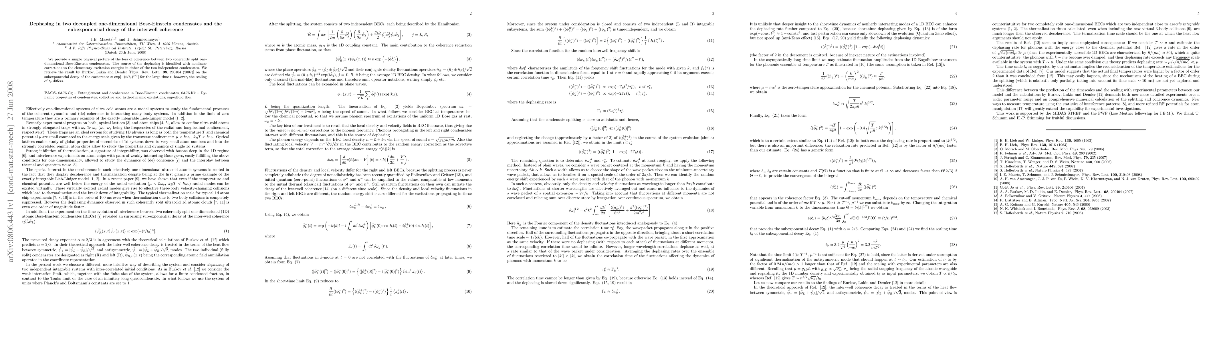 This paper explains the loss of coherence between two independent one-dimensional Bose-Einstein condensates, attributing dephasing to nonlinear corrections in excitation energies. It confirms the subexponential decay of interwell coherence but finds a different scaling for the decoherence time compared to previous work.