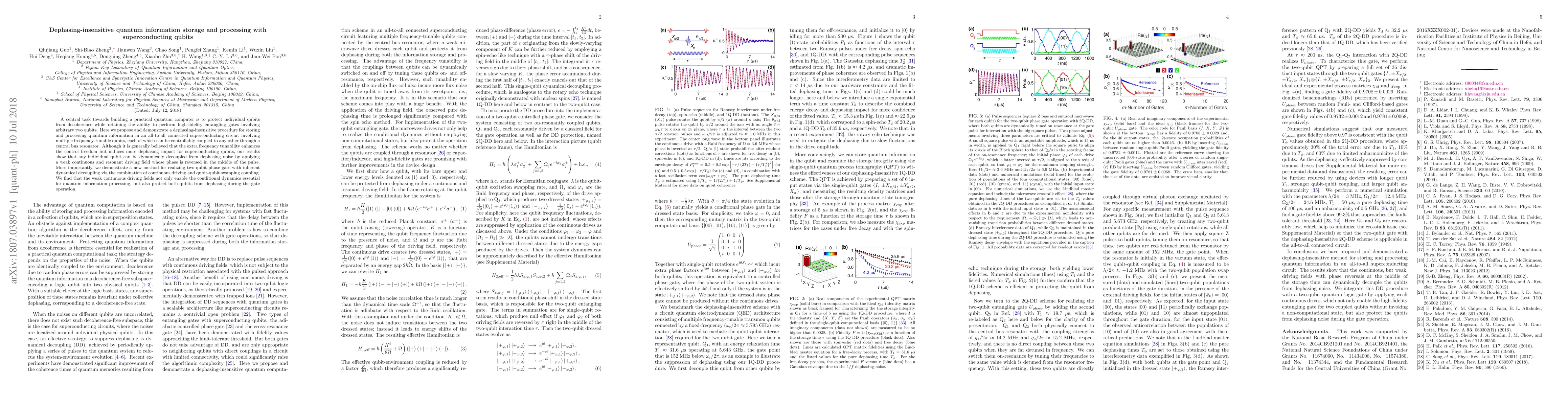 This paper proposes a method for dephasing-insensitive quantum information storage and processing using superconducting qubits, demonstrating a technique to dynamically decouple qubits from dephasing noise and enabling high-fidelity entangling gates through continuous driving and qubit-qubit coupling.