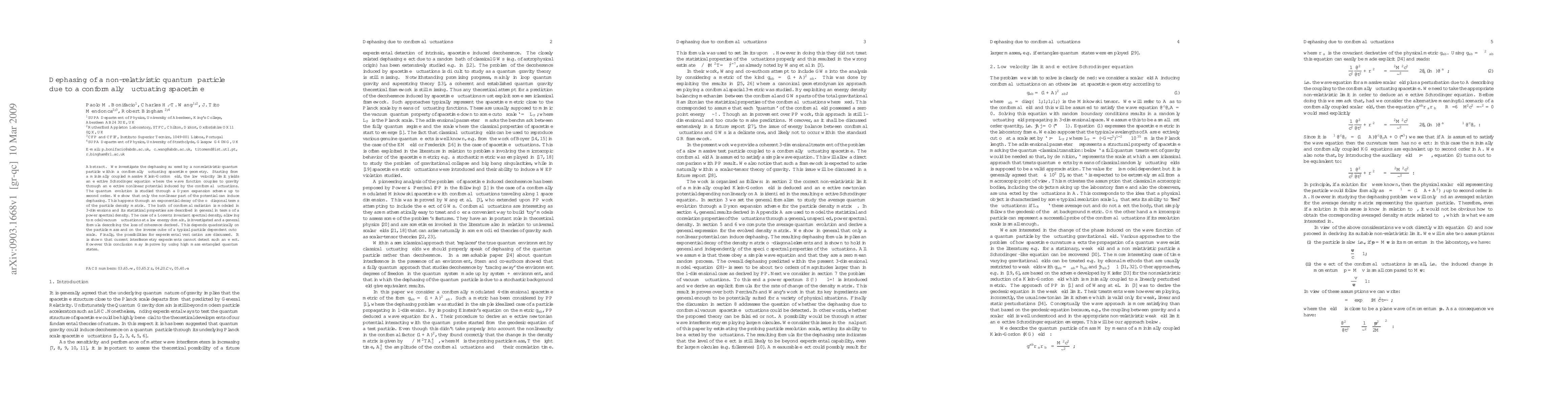 This paper explores how conformal fluctuations in spacetime cause dephasing in a nonrelativistic quantum particle, deriving an effective Schrödinger equation with a nonlinear potential from the Klein-Gordon field. It shows that only the nonlinear potential induces dephasing, leading to an exponential decay of the particle density matrix's off-diagonal terms, and discusses experimental verification possibilities, suggesting current interferometry may not detect the effect but high-mass entangled states might.