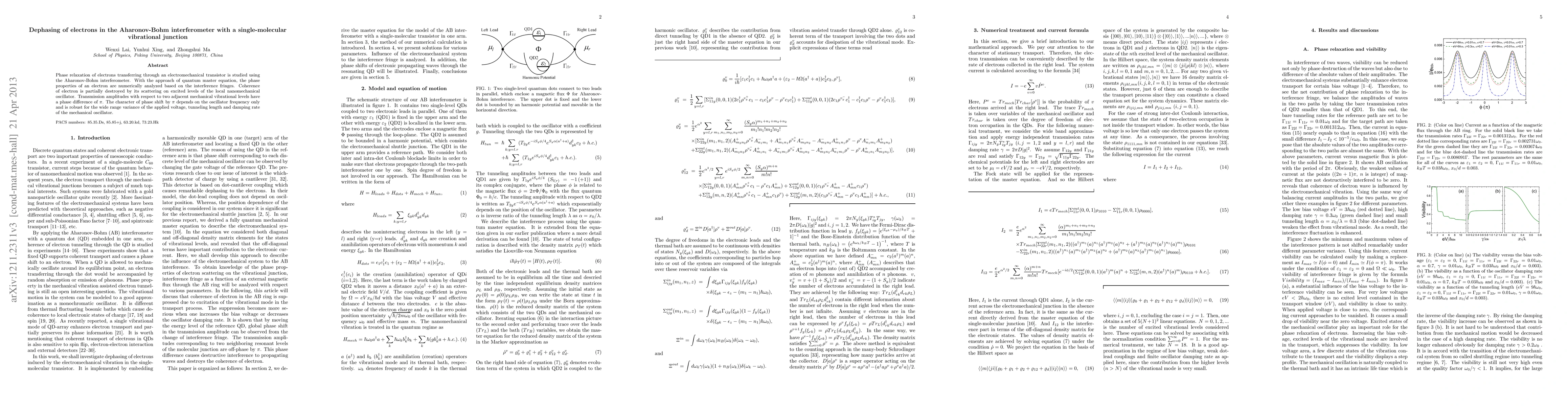 Researchers studied how electrons interact with a nanomechanical oscillator in an Aharonov-Bohm interferometer, finding that the electron's coherence is partially destroyed due to phase relaxation with a phase shift of pi, which depends only on the oscillator frequency.