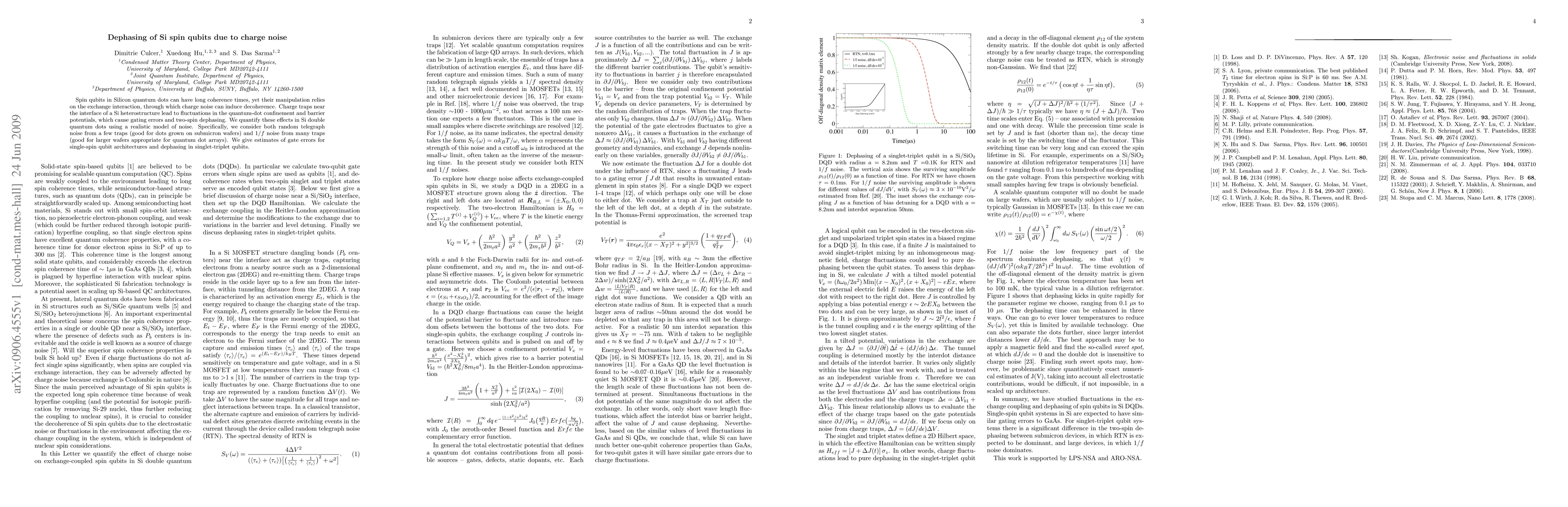 The paper presents a detailed analysis of charge noise effects on Si spin qubits, providing estimates of gate errors and dephasing rates for both single-spin and singlet-triplet qubit architectures.