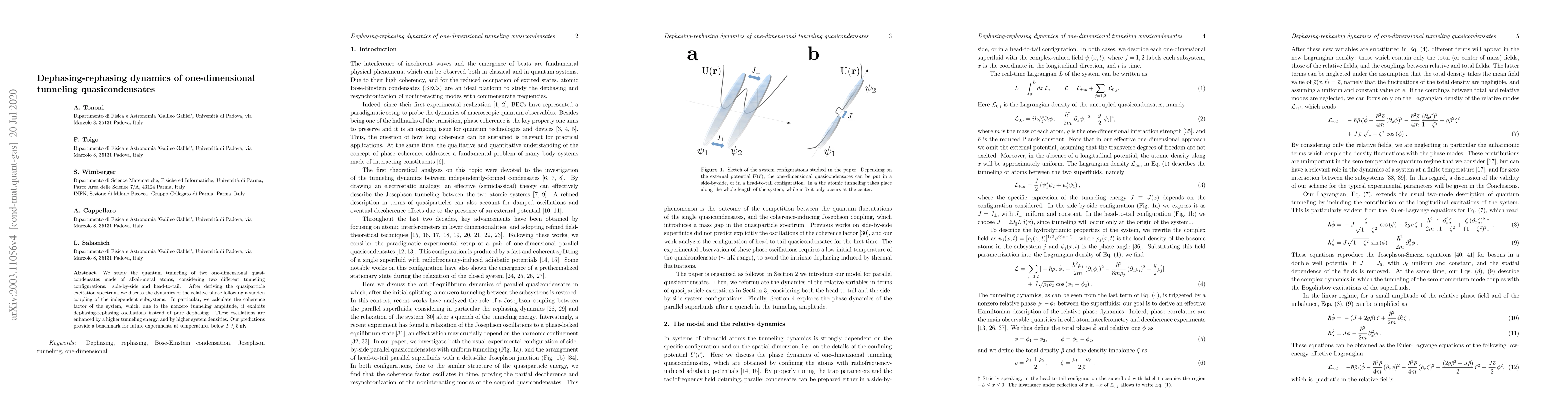 Researchers studied the quantum tunneling of two one-dimensional quasi-condensates made of alkali-metal atoms, finding that they exhibit dephasing-rephasing oscillations due to tunneling, which can enhance at higher energies and densities.