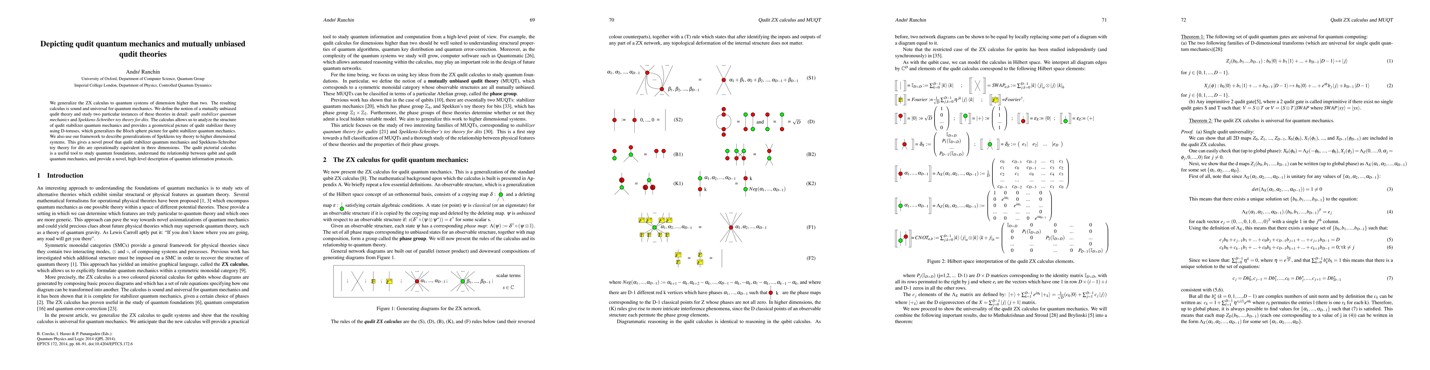 This paper generalizes the ZX calculus to higher-dimensional quantum systems, defining mutually unbiased qudit theories and exploring qudit stabilizer quantum mechanics and Spekkens-Schreiber toy theory. It provides a geometrical framework using D-toruses and proves the operational equivalence of these theories in three dimensions.