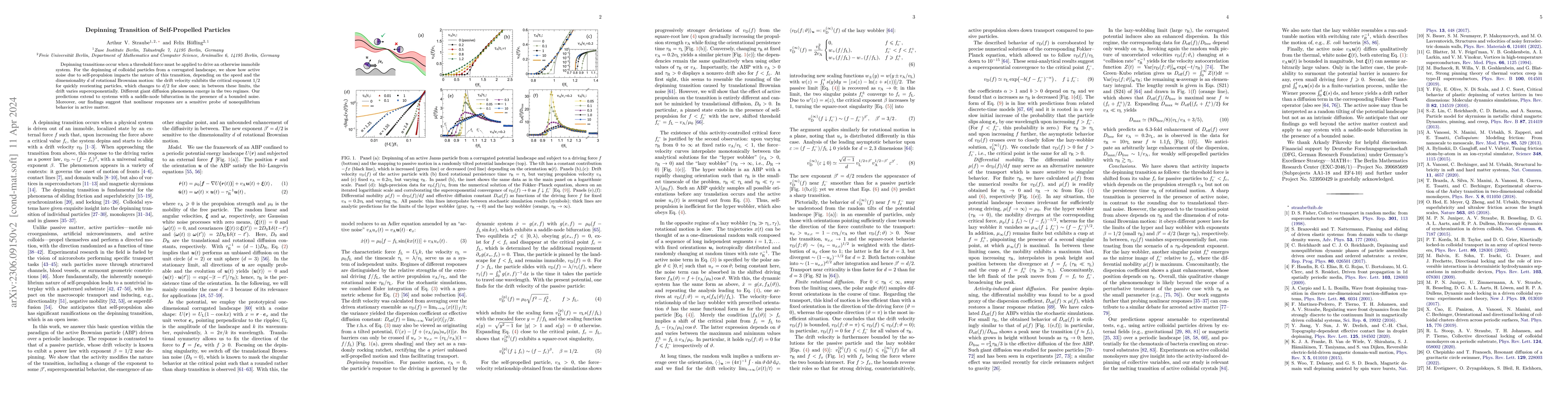 Depinning transitions occur when a threshold force must be applied to drive an otherwise immobile system. For the depinning of colloidal particles from a corrugated landscape, we show how active noise due to self-propulsion impacts the nature of this transition, depending on the speed and the dimensionality $d$ of rotational Brownian motion: the drift velocity exhibits the critical exponent 1/2 for quickly reorienting particles, which changes to $d/2$ for slow ones; in between these limits, the drift varies superexponentially. Different giant diffusion phenomena emerge in the two regimes. Our predictions extend to systems with a saddle-node bifurcation in the presence of a bounded noise. Moreover, our findings suggest that nonlinear responses are a sensitive probe of nonequilibrium behavior in active matter.