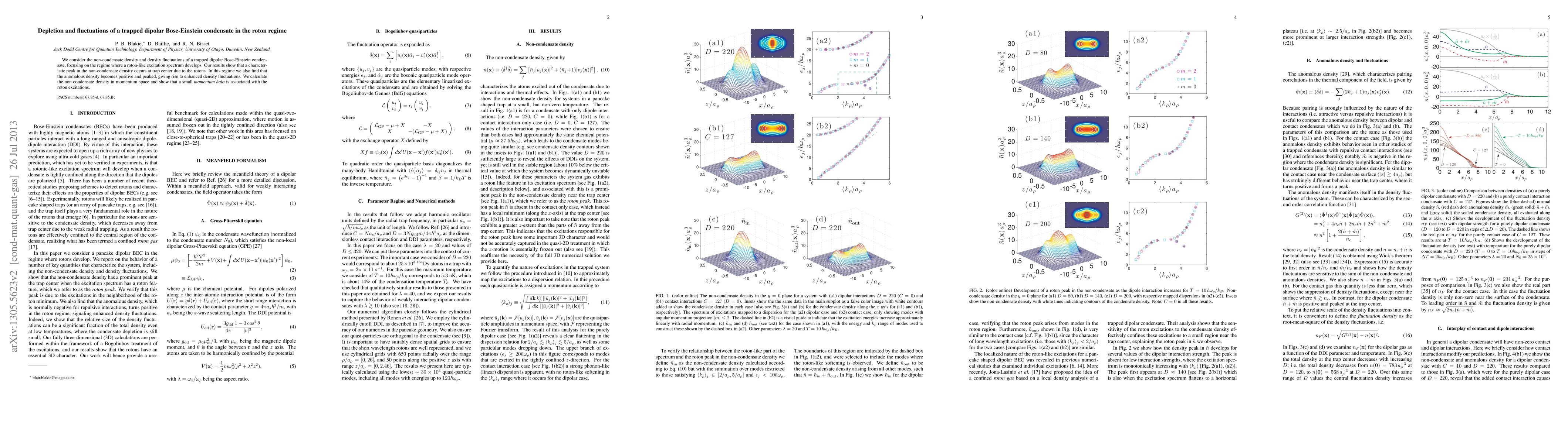 We consider the non-condensate density and density fluctuations of a trapped dipolar Bose-Einstein condensate, focusing on the regime where a roton-like excitation spectrum develops. Our results show that a characteristic peak in the non-condensate density occurs at trap center due to the rotons. In this regime we also find that the anomalous density becomes positive and peaked, giving rise to enhanced density fluctuations. We calculate the non-condensate density in momentum space and show that a small momentum halo is associated with the roton excitations.