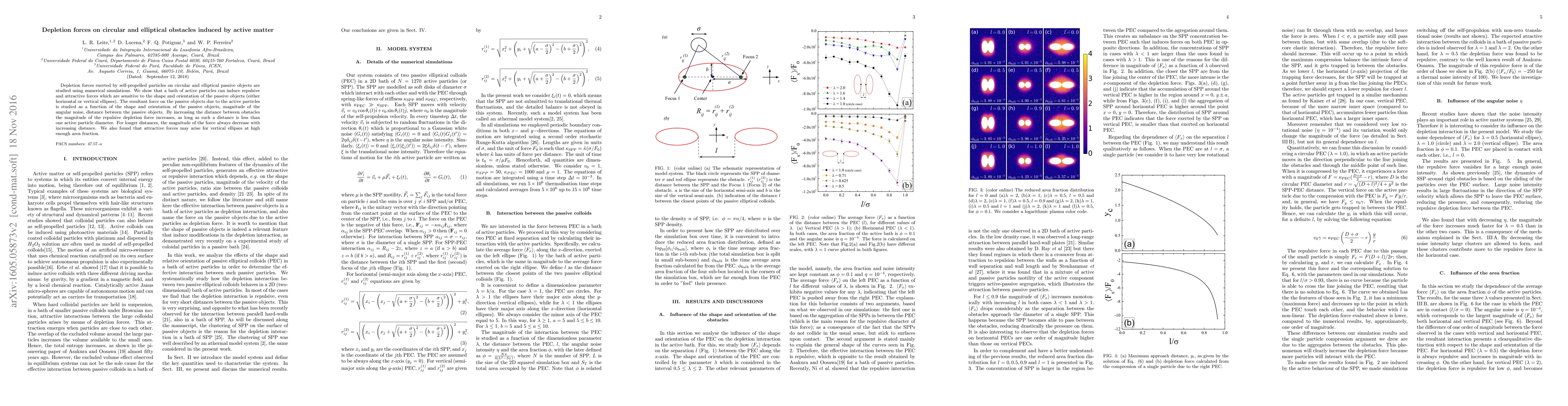 This paper investigates the depletion forces on circular and elliptical obstacles due to active matter using numerical simulations. It reveals that active particles induce both repulsive and attractive forces, which vary with the shape and orientation of passive objects, and the distance between them. Repulsive forces increase with increasing distance up to one particle diameter, beyond which they decrease. Attractive forces can also occur for vertical ellipses at high area fractions.