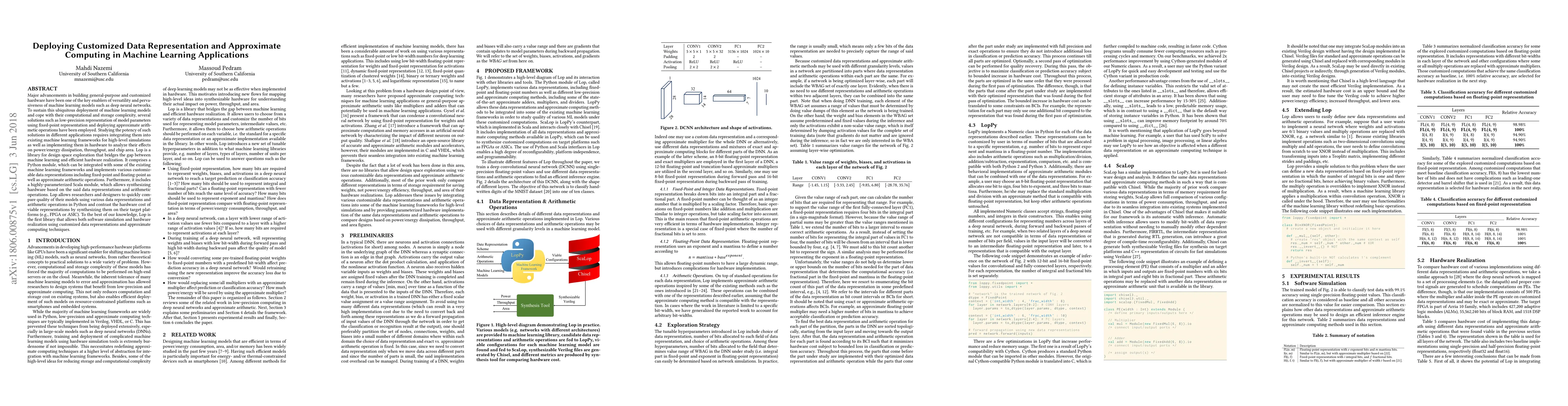 This paper introduces Lop, a library for exploring customized data representations and approximate computing in machine learning applications. Lop integrates with existing frameworks for high-level simulations and synthesizes hardware to analyze power/energy efficiency, enabling rapid comparison of model performance and hardware costs.