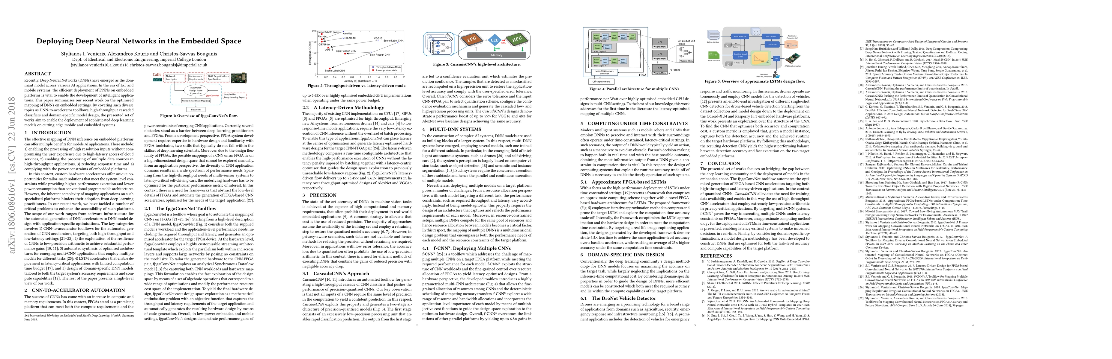 Recently, Deep Neural Networks (DNNs) have emerged as the dominant model across various AI applications. In the era of IoT and mobile systems, the efficient deployment of DNNs on embedded platforms is vital to enable the development of intelligent applications. This paper summarises our recent work on the optimised mapping of DNNs on embedded settings. By covering such diverse topics as DNN-to-accelerator toolflows, high-throughput cascaded classifiers and domain-specific model design, the presented set of works aim to enable the deployment of sophisticated deep learning models on cutting-edge mobile and embedded systems.