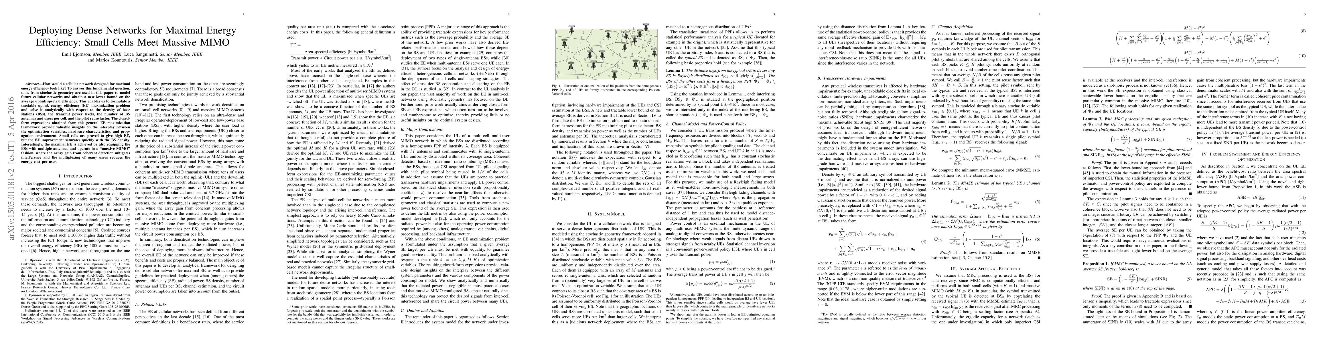 How would a cellular network designed for maximal energy efficiency look like? To answer this fundamental question, tools from stochastic geometry are used in this paper to model future cellular networks and obtain a new lower bound on the average uplink spectral efficiency. This enables us to formulate a tractable uplink energy efficiency (EE) maximization problem and solve it analytically with respect to the density of base stations (BSs), the transmit power levels, the number of BS antennas and users per cell, and the pilot reuse factor. The closed-form expressions obtained from this general EE maximization framework provide valuable insights on the interplay between the optimization variables, hardware characteristics, and propagation environment. Small cells are proved to give high EE, but the EE improvement saturates quickly with the BS density. Interestingly, the maximal EE is achieved by also equipping the BSs with multiple antennas and operate in a "massive MIMO" fashion, where the array gain from coherent detection mitigates interference and the multiplexing of many users reduces the energy cost per user.