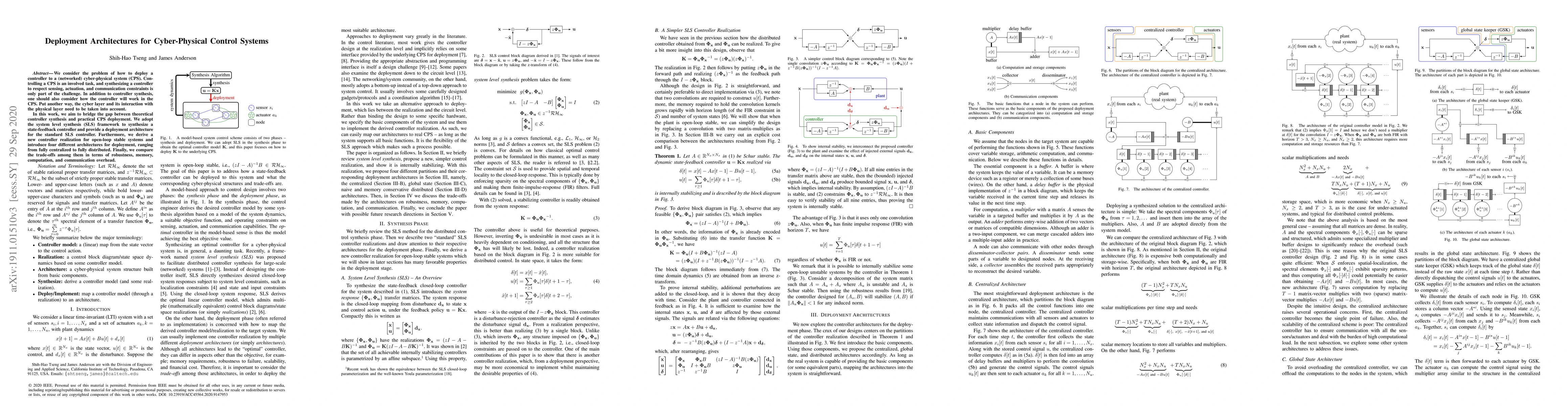 This research paper proposes deployment architectures for cyber-physical control systems, focusing on bridge the gap between theoretical controller synthesis and practical CPS deployment, offering four different architectures with varying levels of centralization.