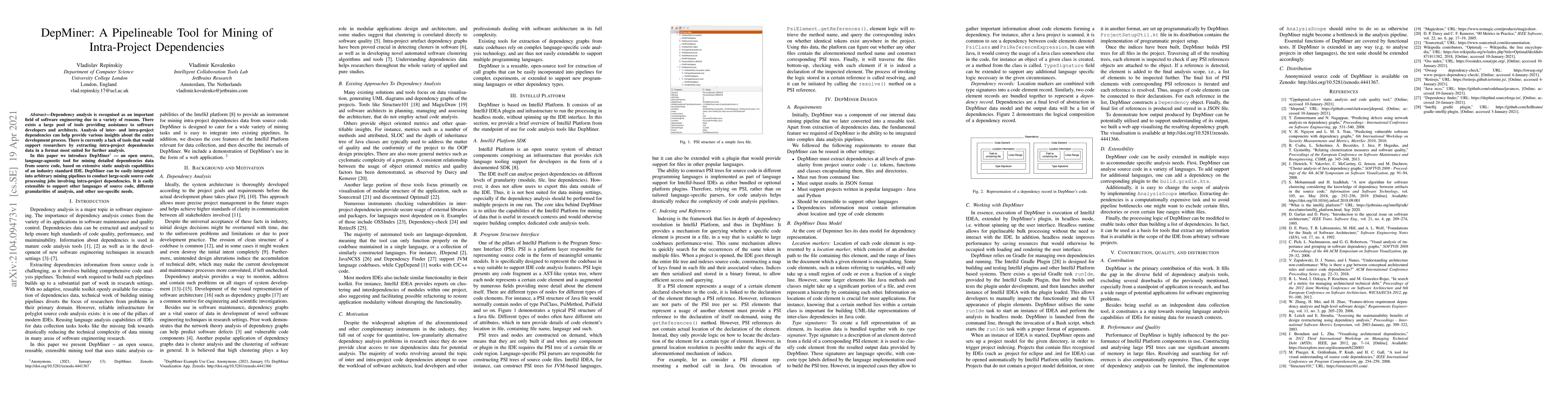 DepMiner is an open-source tool for mining intra-project dependencies from source code, providing insights into software development processes. It's a language-agnostic, easily integratable pipelineable tool for large-scale source code analysis.