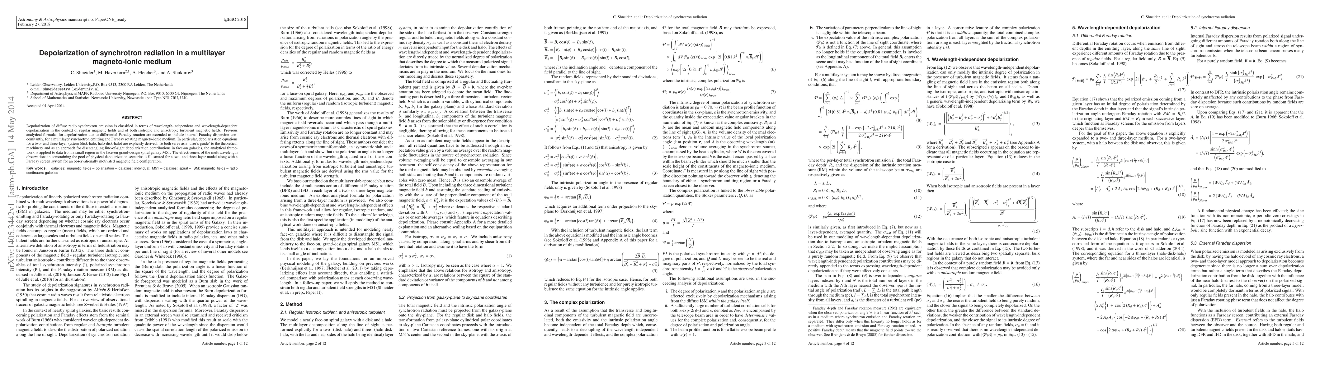 Depolarization of diffuse radio synchrotron emission is classified in terms of wavelength-independent and wavelength-dependent depolarization in the context of regular magnetic fields and of both isotropic and anisotropic turbulent magnetic fields. Previous analytical formulas for depolarization due to differential Faraday rotation are extended to include internal Faraday dispersion concomitantly, for a multilayer synchrotron emitting and Faraday rotating magneto-ionic medium. In particular, depolarization equations for a two- and three-layer system (disk-halo, halo-disk-halo) are explicitly derived. To both serve as a `user's guide' to the theoretical machinery and as an approach for disentangling line-of-sight depolarization contributions in face-on galaxies, the analytical framework is applied to data from a small region in the face-on grand-design spiral galaxy M51. The effectiveness of the multiwavelength observations in constraining the pool of physical depolarization scenarios is illustrated for a two- and three-layer model along with a Faraday screen system for an observationally motivated magnetic field configuration.