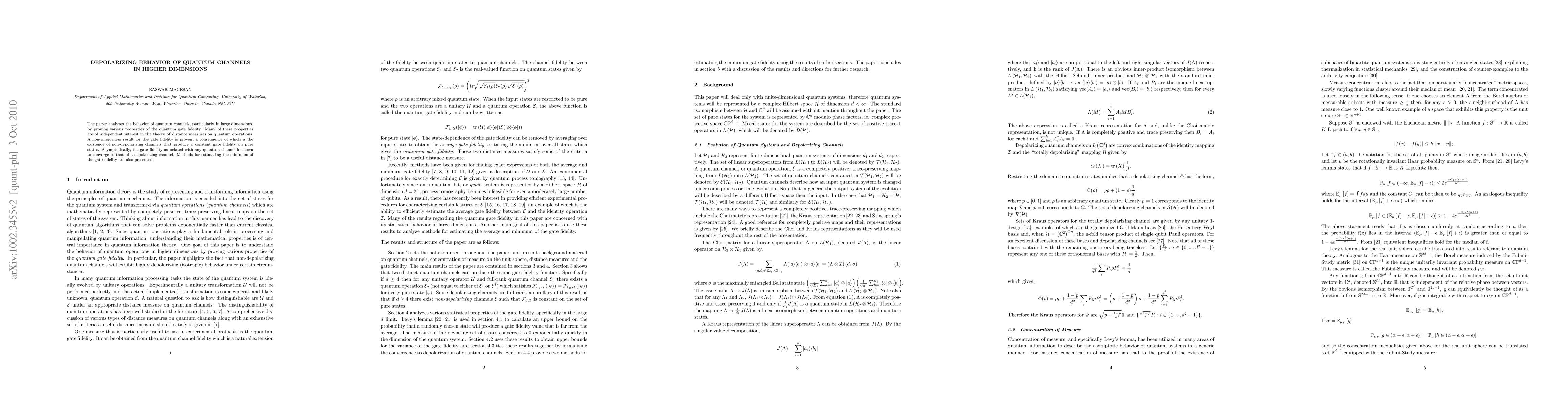 This paper investigates the properties of quantum channels in high dimensions, proving that the gate fidelity can be non-unique and revealing the existence of non-depolarizing channels maintaining constant fidelity on pure states. It concludes that the gate fidelity asymptotically converges to that of a depolarizing channel, and introduces methods for estimating the minimum gate fidelity.