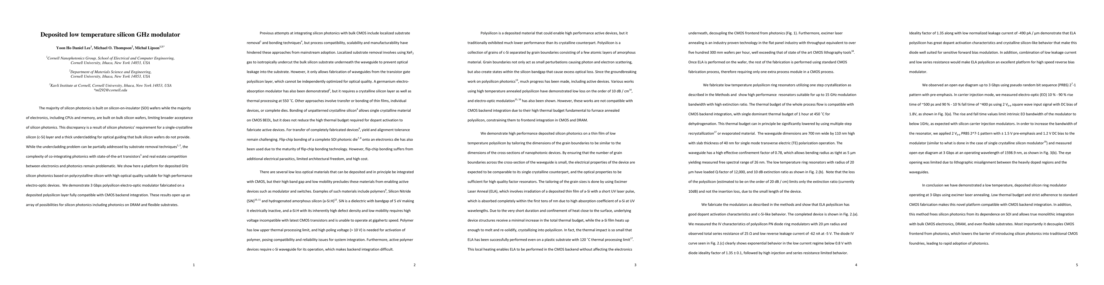 Researchers developed a platform for deposited GHz silicon photonics using polycrystalline silicon, enabling high-performance electro-optic devices compatible with CMOS backend integration.