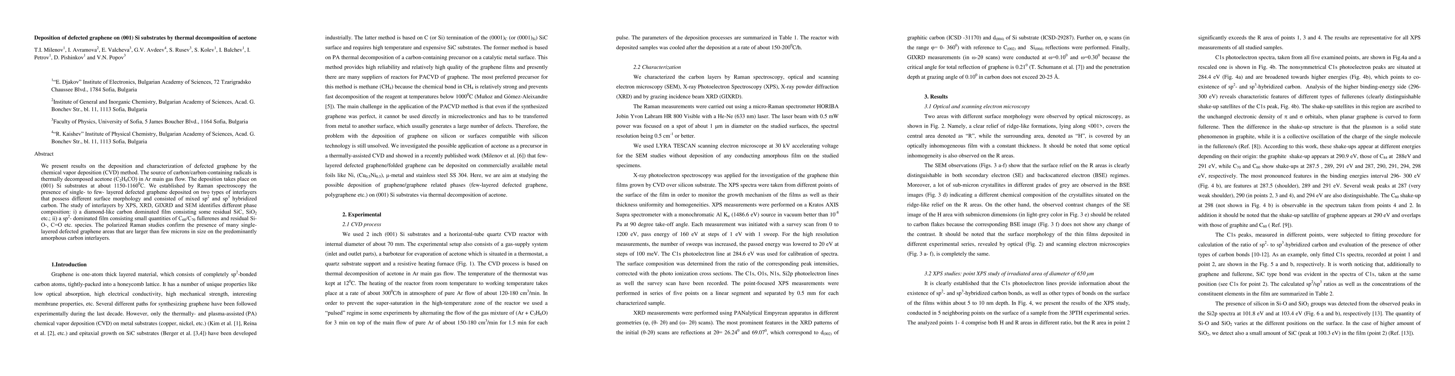 Researchers successfully deposited defected graphene on silicon substrates using acetone thermal decomposition, producing mixed sp2 and sp3 hybridized carbon films with varying phase compositions.