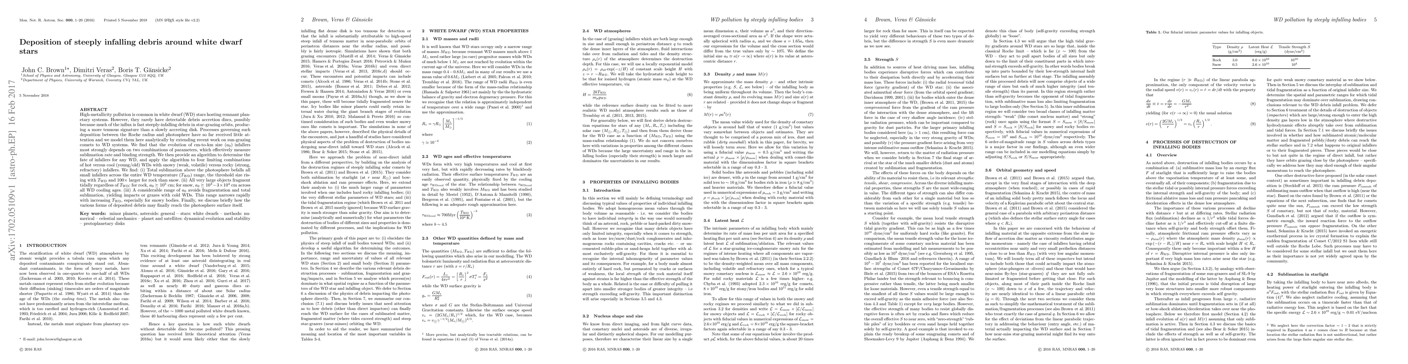 This paper models the deposition of steeply infalling debris around white dwarf stars, finding that small debris sublimates above the photosphere, while large objects fragment tidally. Intermediate sizes may impact or graze the star, with the likelihood of these outcomes depending on the star's temperature and the debris's composition.