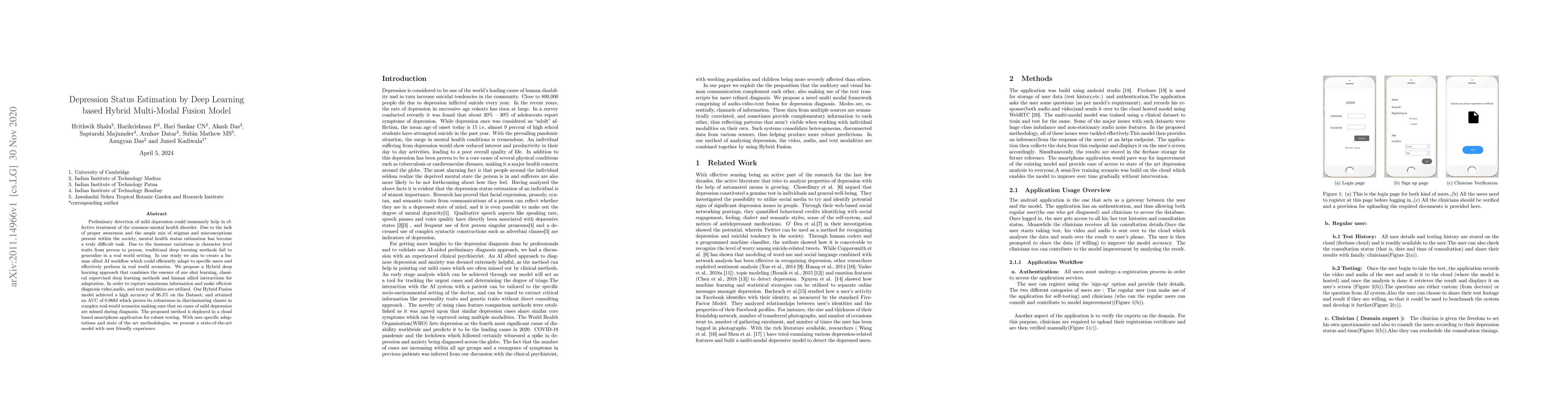 Preliminary detection of mild depression could immensely help in effective treatment of the common mental health disorder. Due to the lack of proper awareness and the ample mix of stigmas and misconceptions present within the society, mental health status estimation has become a truly difficult task. Due to the immense variations in character level traits from person to person, traditional deep learning methods fail to generalize in a real world setting. In our study we aim to create a human allied AI workflow which could efficiently adapt to specific users and effectively perform in real world scenarios. We propose a Hybrid deep learning approach that combines the essence of one shot learning, classical supervised deep learning methods and human allied interactions for adaptation. In order to capture maximum information and make efficient diagnosis video, audio, and text modalities are utilized. Our Hybrid Fusion model achieved a high accuracy of 96.3% on the Dataset; and attained an AUC of 0.9682 which proves its robustness in discriminating classes in complex real-world scenarios making sure that no cases of mild depression are missed during diagnosis. The proposed method is deployed in a cloud-based smartphone application for robust testing. With user-specific adaptations and state of the art methodologies, we present a state-of-the-art model with user friendly experience.