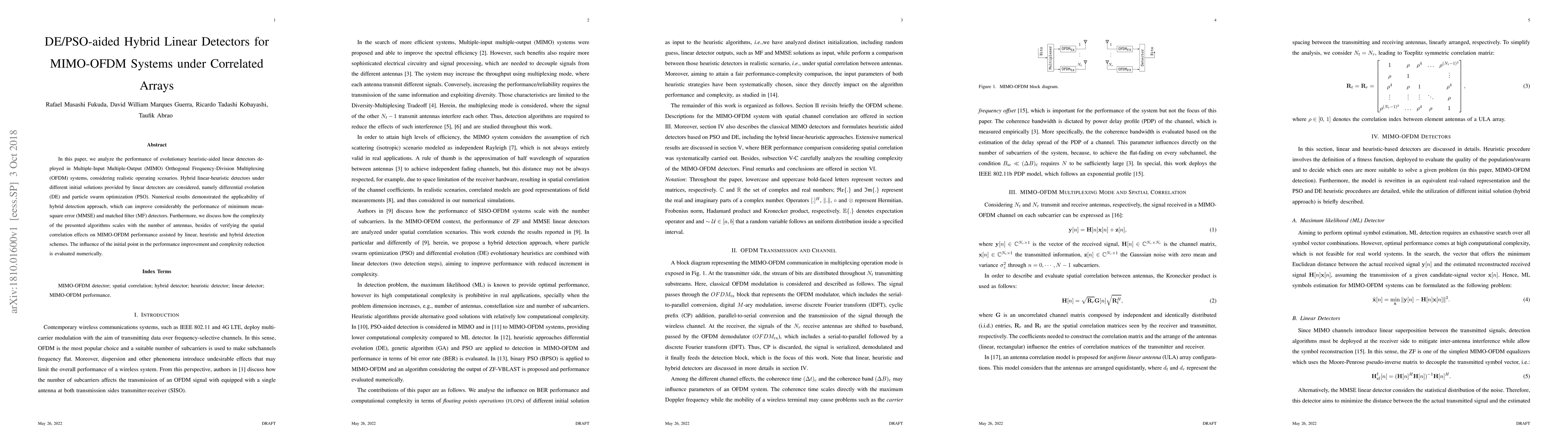 The paper analyzes the performance of hybrid linear detectors aided by evolutionary heuristics (DE and PSO) in MIMO-OFDM systems, considering realistic scenarios and spatial correlation effects. It compares linear, heuristic, and hybrid detection schemes, evaluating their performance and complexity.