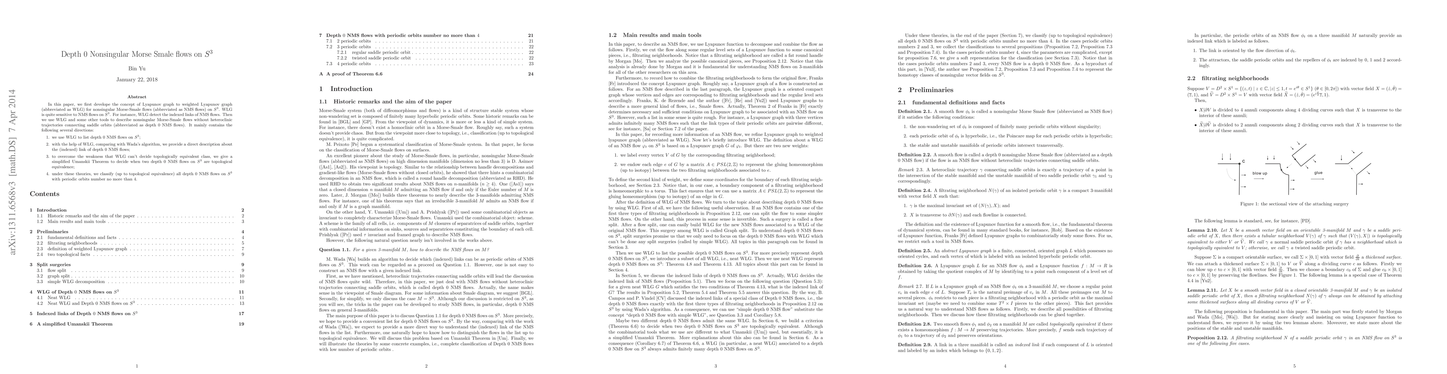 In this paper, we first develope the concept of Lyapunov graph to weighted Lyapunov graph (abbreviated as WLG) for nonsingular Morse-Smale flows (abbreviated as NMS flows) on $S^3$. WLG is quite sensitive to NMS flows on $S^3$. For instance, WLG detect the indexed links of NMS flows. Then we use WLG and some other tools to describe nonsingular Morse-Smale flows without heteroclinic trajectories connecting saddle orbits (abbreviated as depth $0$ NMS flows). It mainly contains the following several directions: \begin{enumerate} \item we use WLG to list depth $0$ NMS flows on $S^3$; \item with the help of WLG, comparing with Wada's algorithm, we provide a direct description about the (indexed) link of depth $0$ NMS flows; \item to overcome the weakness that WLG can't decide topologically equivalent class, we give a simplified Umanskii Theorem to decide when two depth $0$ NMS flows on $S^3$ are topological equivalence; \item under these theories, we classify (up to topological equivalence) all depth 0 NMS flows on $S^3$ with periodic orbits number no more than 4. \end{enumerate}
