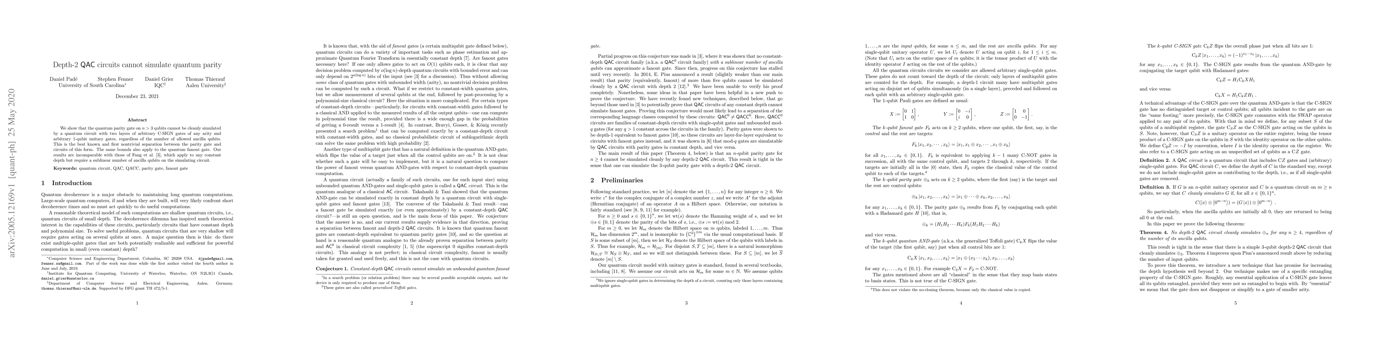 This research provides a clear separation between quantum parity and depth-2 quantum circuits, contributing to the understanding of the computational power of shallow quantum circuits.