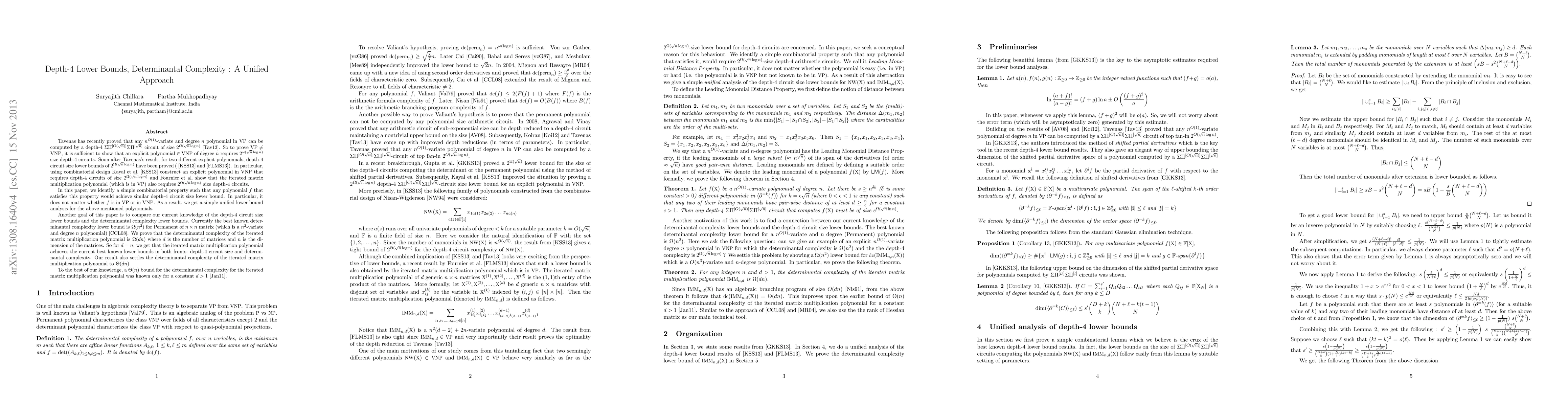 Tavenas has recently proved that any n^{O(1)}-variate and degree n polynomial in VP can be computed by a depth-4 circuit of size 2^{O(\sqrt{n}\log n)}. So to prove VP not equal to VNP, it is sufficient to show that an explicit polynomial in VNP of degree n requires 2^{\omega(\sqrt{n}\log n)} size depth-4 circuits. Soon after Tavenas's result, for two different explicit polynomials, depth-4 circuit size lower bounds of 2^{\Omega(\sqrt{n}\log n)} have been proved Kayal et al. and Fournier et al. In particular, using combinatorial design Kayal et al.\ construct an explicit polynomial in VNP that requires depth-4 circuits of size 2^{\Omega(\sqrt{n}\log n)} and Fournier et al.\ show that iterated matrix multiplication polynomial (which is in VP) also requires 2^{\Omega(\sqrt{n}\log n)} size depth-4 circuits. In this paper, we identify a simple combinatorial property such that any polynomial f that satisfies the property would achieve similar circuit size lower bound for depth-4 circuits. In particular, it does not matter whether f is in VP or in VNP. As a result, we get a very simple unified lower bound analysis for the above mentioned polynomials. Another goal of this paper is to compare between our current knowledge of depth-4 circuit size lower bounds and determinantal complexity lower bounds. We prove the that the determinantal complexity of iterated matrix multiplication polynomial is \Omega(dn) where d is the number of matrices and n is the dimension of the matrices. So for d=n, we get that the iterated matrix multiplication polynomial achieves the current best known lower bounds in both fronts: depth-4 circuit size and determinantal complexity. To the best of our knowledge, a \Theta(n) bound for the determinantal complexity for the iterated matrix multiplication polynomial was known only for constant d>1 by Jansen.