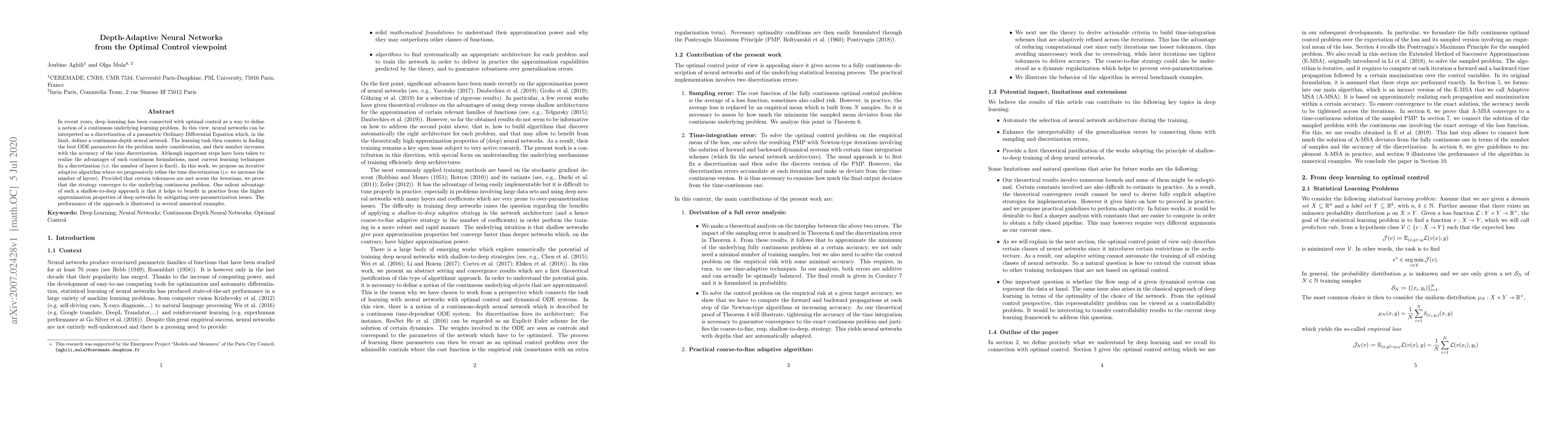 Researchers propose an iterative adaptive algorithm to refine neural networks by increasing the number of layers, allowing for more accurate approximations without over-parametrization issues. The approach converges to the underlying continuous problem and outperforms fixed-discretization methods in several numerical examples.