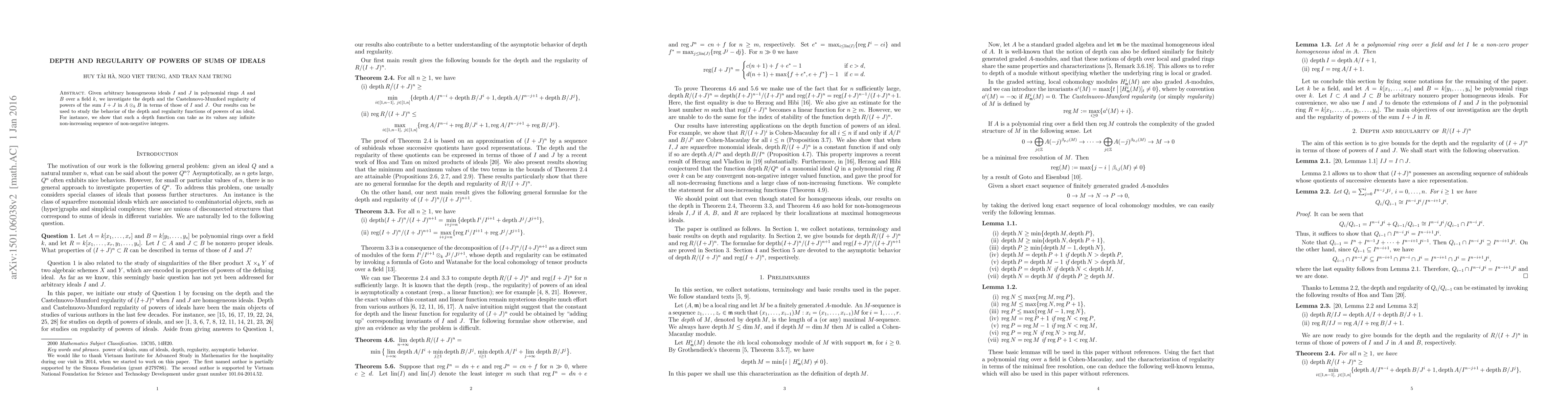 This paper explores the depth and regularity of powers of the sum of two homogeneous ideals $I$ and $J$ in polynomial rings over a field, providing insights into how these properties relate to those of $I$ and $J$. It demonstrates that the depth function of powers of an ideal can yield any infinite non-increasing sequence of non-negative integers.