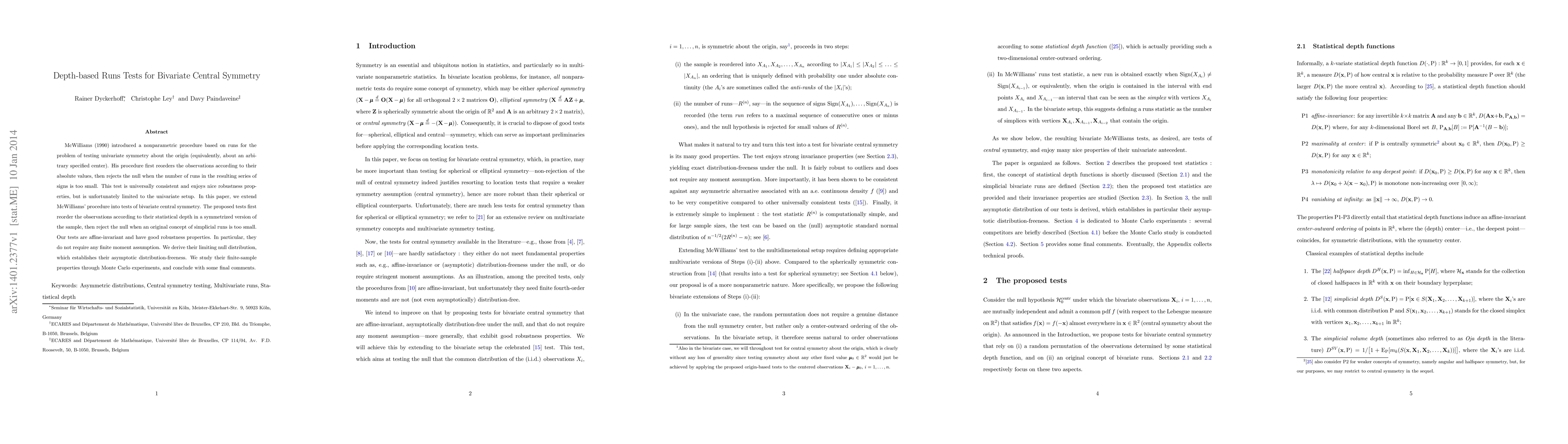 This paper extends McWilliams' univariate symmetry test to bivariate central symmetry, using a new method based on statistical depth that is affine-invariant and robust without requiring moment assumptions.
