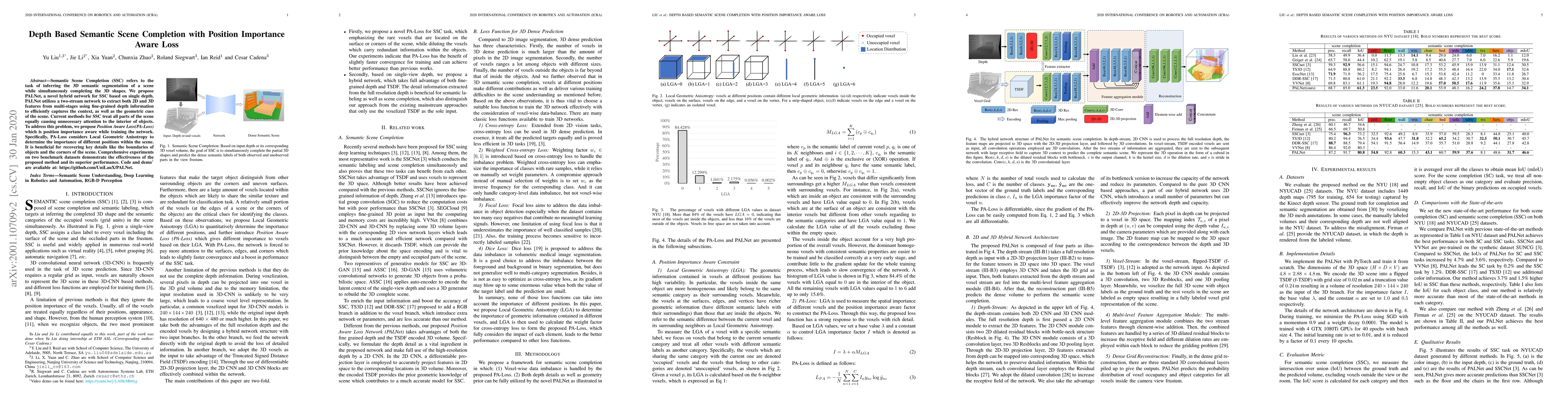 This paper introduces PALNet, a hybrid network for Semantic Scene Completion using single depth images. It employs a two-stream network to extract 2D and 3D features, and a Position Aware Loss (PA-Loss) to prioritize important scene positions, improving detail recovery. Experiments show superior performance on benchmark datasets.