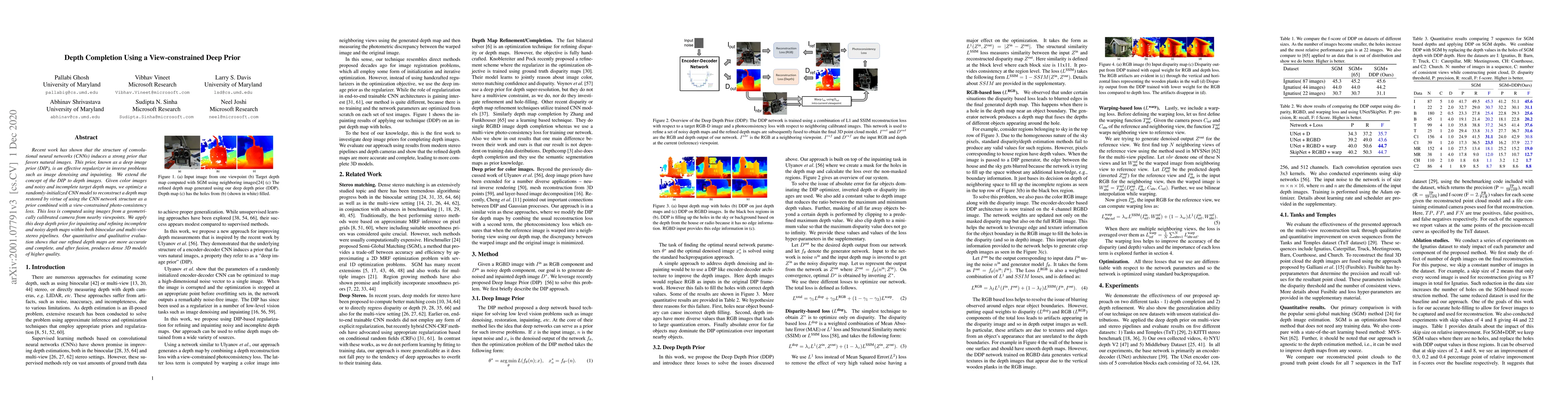This research paper proposes a method to reconstruct accurate and complete depth maps using a deep prior derived from convolutional neural networks. By combining a view-constrained photo-consistency loss with the inherent structure of CNNs, the method effectively refines incomplete and noisy depth maps, leading to higher quality 3D models. For more details, please refer to the original publication.