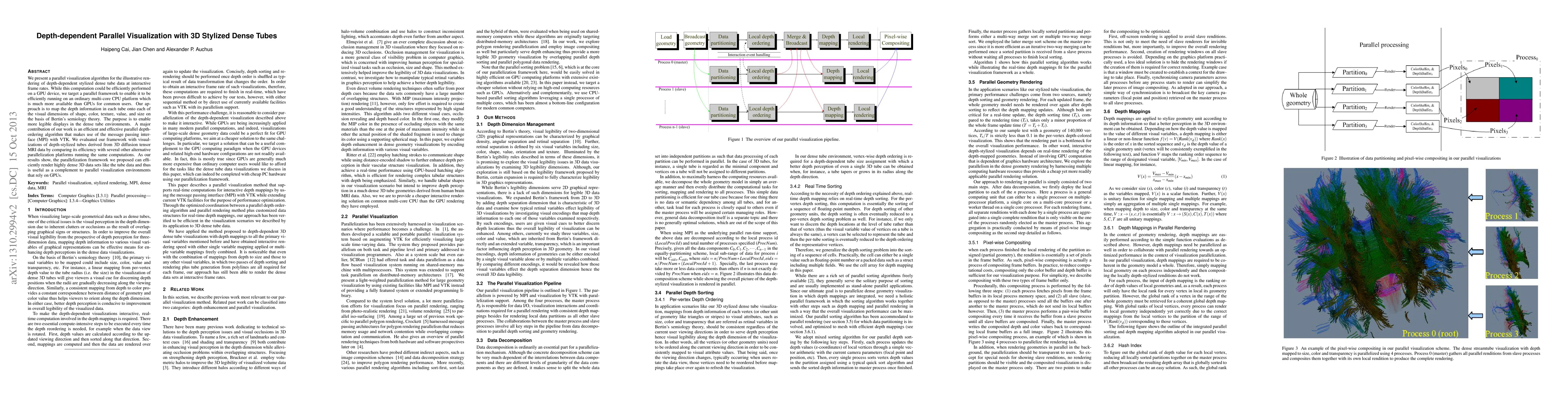 This paper introduces a parallel visualization algorithm for rendering depth-dependent stylized dense tube data on multi-core CPUs, utilizing Bertin's semiology theory for enhanced legibility. The key contribution is an efficient parallel depth-ordering algorithm using MPI with VTK, which outperforms other parallelization platforms in rendering dense 3D data sets like diffusion tensor MRI tubes.