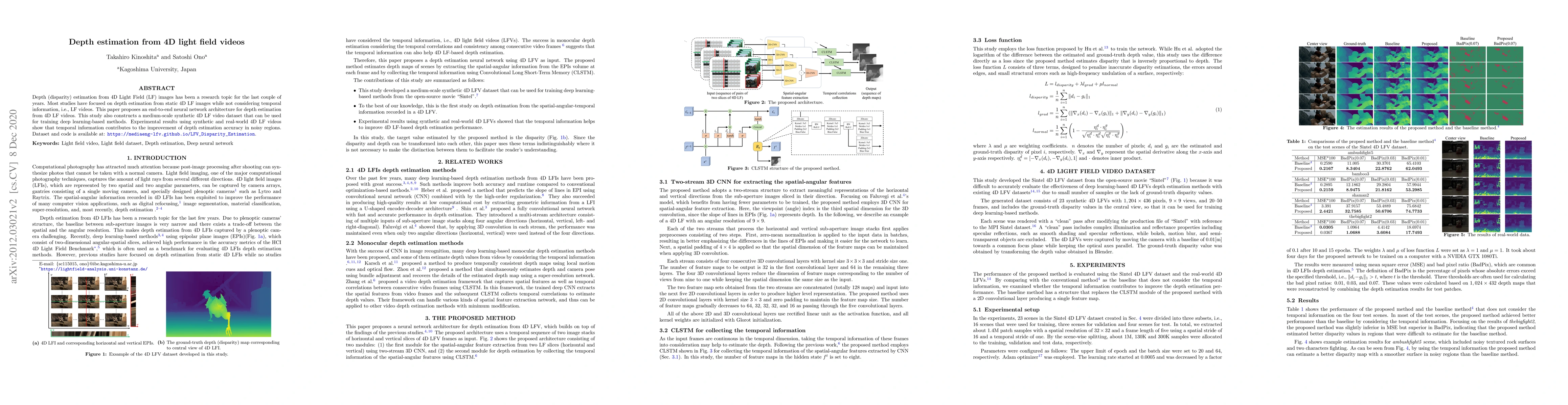 This paper introduces a neural network for depth estimation from 4D light field videos, leveraging temporal information to enhance accuracy in noisy regions. It also provides a synthetic dataset for training, demonstrating improved depth estimation performance.