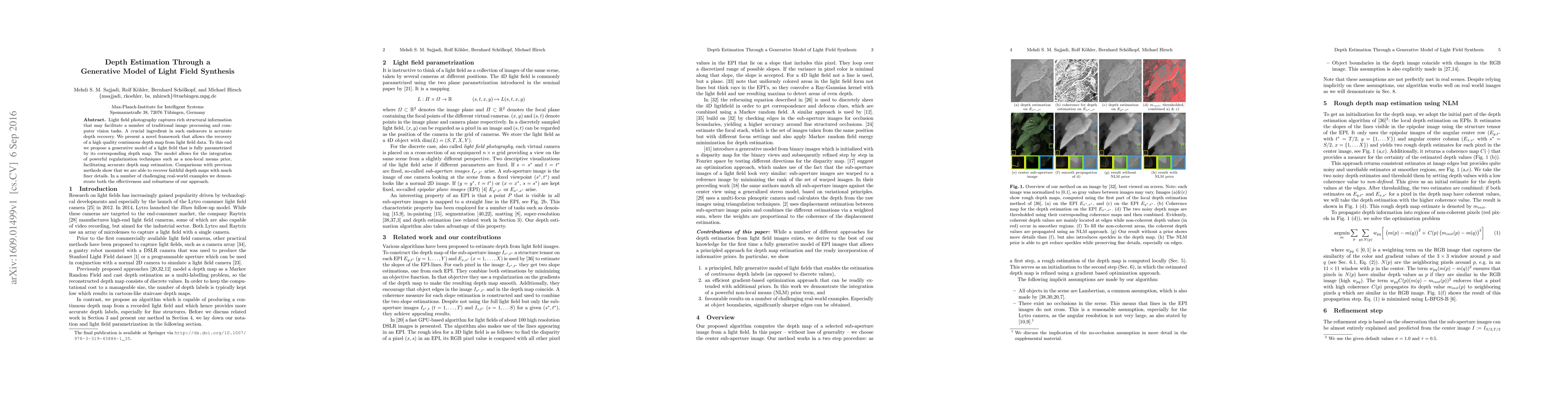 This paper presents a novel generative model for light field synthesis to accurately estimate continuous depth maps. The model leverages powerful regularization techniques, including a non-local means prior, to achieve high-quality depth recovery from light field data.