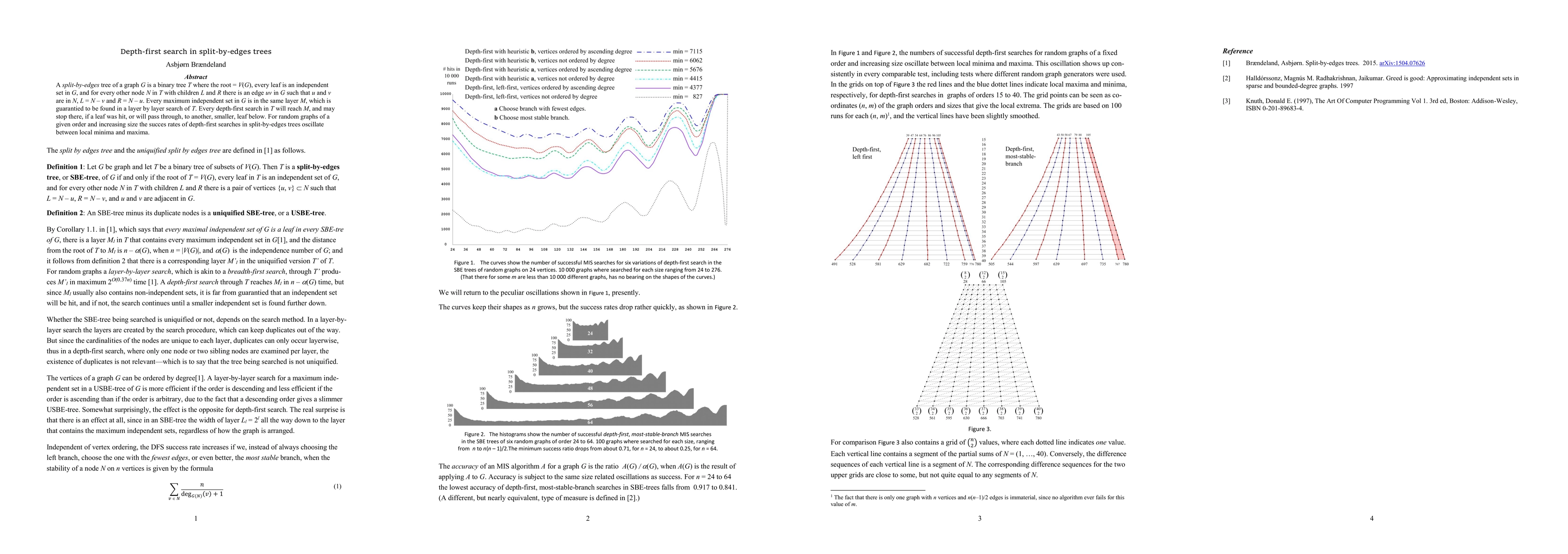 A layerwise search in a split-by-edges tree (as defined by Br{\ae}ndeland, 2015) of agiven graph produces a maximum independent set in exponential time. A depth-first search produces an independent set, which may or may not be a maximum, in linear time, but the worst case success rate is maybe not high enough to make it really interesting. What may make depth-first searching in split-by-edges trees interesting, though, is the pronounced oscillation of its success rate along the graph size axis.