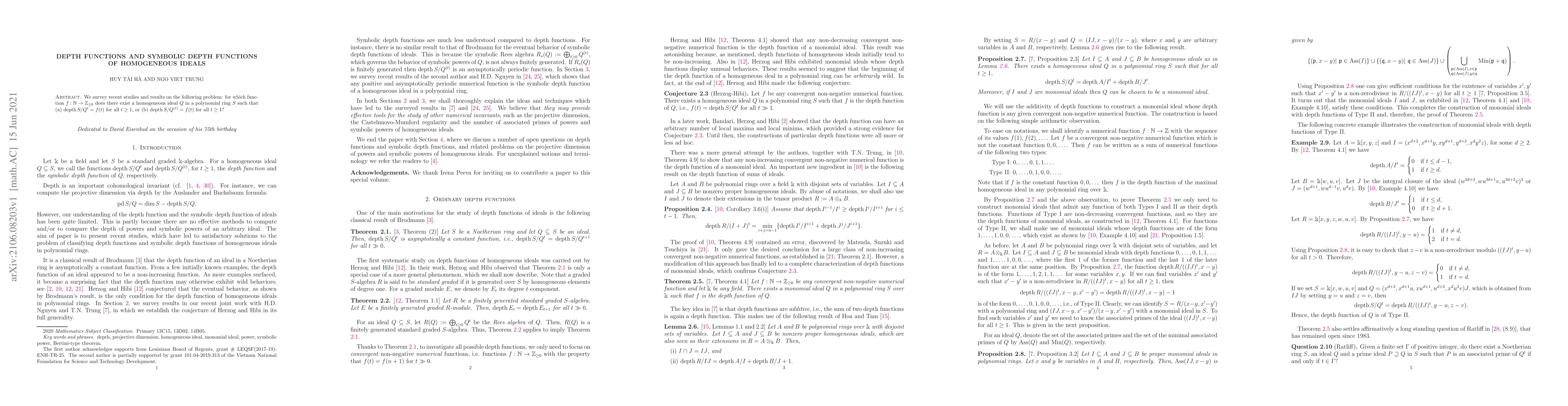 Summary: This paper reviews recent advancements in determining which numerical functions can serve as depth functions for powers and symbolic powers of homogeneous ideals. The study focuses on understanding the properties and behaviors of these depth functions in algebraic geometry.