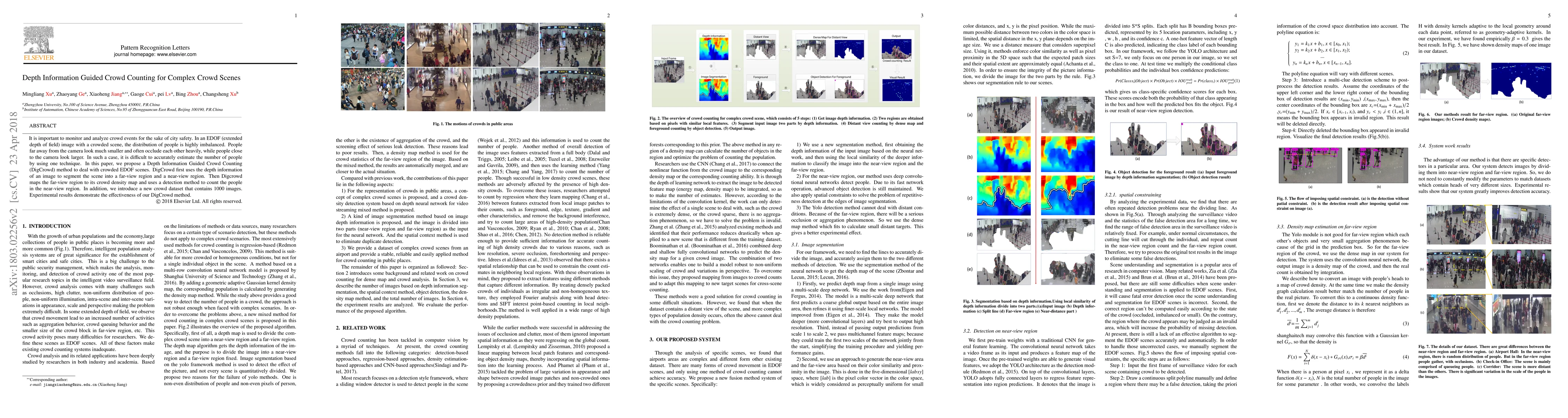 This paper proposes a Depth Information Guided Crowd Counting (DigCrowd) method to accurately estimate people in crowded scenes using EDOF images. DigCrowd segments the scene based on depth information, separately mapping the far-view region to a density map and detecting individuals in the near-view region, demonstrating improved accuracy over traditional methods.