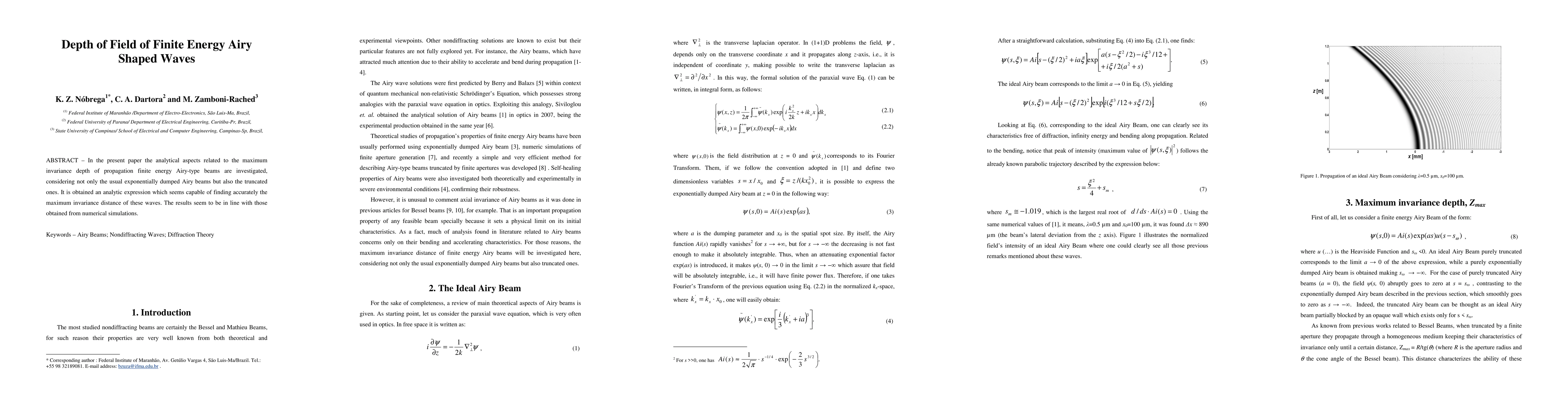 Researchers investigated the maximum invariance depth of finite energy Airy-shaped waves, finding an analytic expression for the maximum invariance distance that matches numerical simulation results.