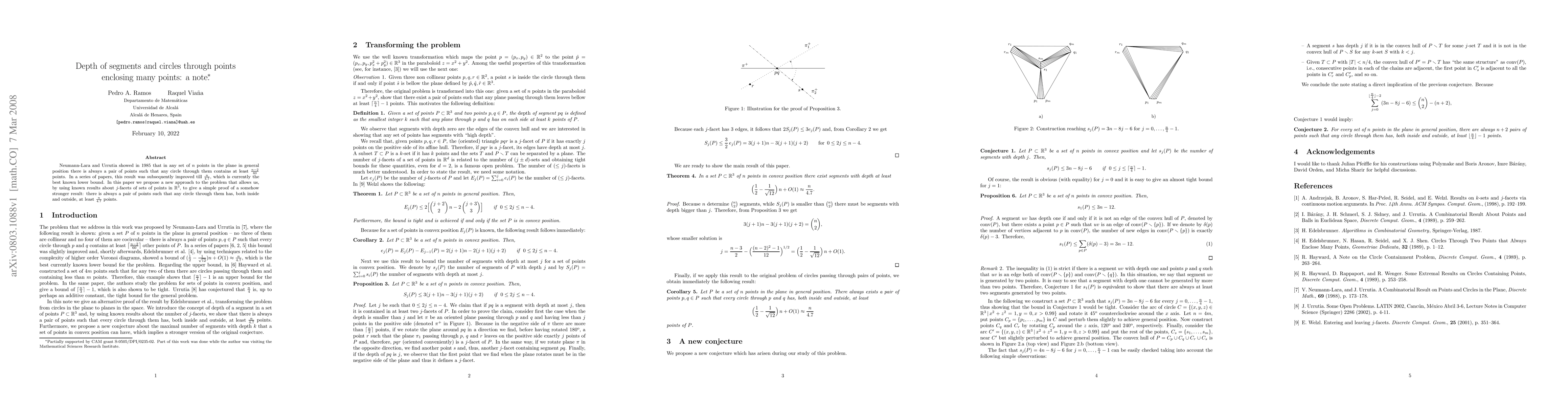 Neumann-Lara and Urrutia showed in 1985 that in any set of n points in the plane in general positionthere is always a pair of points such that any circle through them contains at least (n-2)/60 points. In a series of papers, this result was subsequently improved till n/4.7, which is currently the best known lower bound. In this paper we propose a new approach to the problem that allows us, by using known results about j-facets of sets of points in $R^3$, to give a simple proof of a somehow stronger result: there is always a pair of points such that any circle through them has, both inside and outside, at least n/4.7 points.