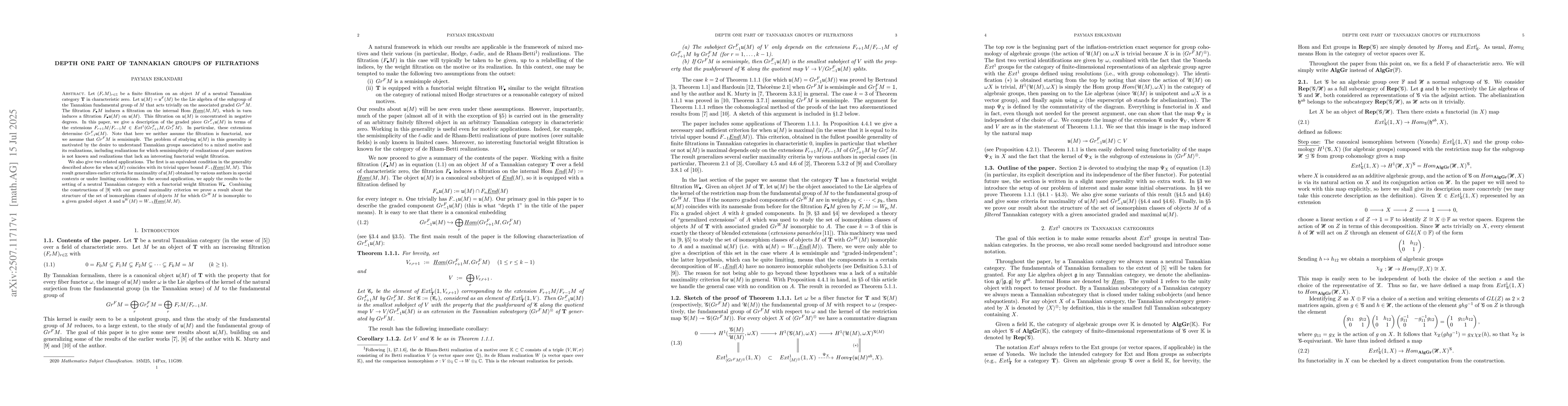 Let $(F_r M)_{r\in\mathbb{Z}}$ be a finite filtration on an object $M$ of a neutral Tannakian category $\mathbf{T}$ in characteristic zero. Let $u(M)=u^F(M)$ be the Lie algebra of the subgroup of the Tannakian fundamental group of $M$ that acts trivially on the associated graded $Gr^FM$. The filtration $F_\bullet M$ induces a filtration on the internal Hom $\underline{Hom}(M,M)$, which in turn induces a filtration $F_\bullet u(M)$ on $u(M)$. This filtration on $u(M)$ is concentrated in negative degrees. In this paper, we give a description of the graded piece $Gr^F_{-1}u( M)$ in terms of the extensions $F_{r+1}M/F_{r-1}M\in Ext^1(Gr^F_{r+1}M, Gr^F_{r}M)$. In particular, these extensions determine $Gr^F_{-1}u(M)$. Note that here we neither assume the filtration is functorial, nor we assume that $Gr^FM$ is semisimple. The problem of studying $u(M)$ in this generality is motivated by the desire to understand Tannakian groups associated to a mixed motive and its realizations, including realizations for which semisimplicity of realizations of pure motives is not known and realizations that lack an interesting functorial weight filtration. We also give two related applications. The first is an equivalent condition in the generality described above for when $u(M)$ coincides with its trivial upper bound $F_{-1}\underline{Hom}(M,M)$. This result generalizes earlier criteria for maximality of $u(M)$ obtained by various authors in special contexts or under limiting conditions. In the second application, we apply the results to the setting of a neutral Tannakian category with a functorial weight filtration $W_\bullet$. Combining the constructions of [arXiv:2307.15487] with our general maximality criterion we prove a result about the structure of the set of isomorphism classes of objects $M$ for which $Gr^WM$ is isomorphic to a given graded object $A$ and $u^W(M)=W_{-1}\underline{Hom}(M,M)$.